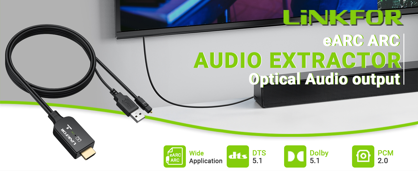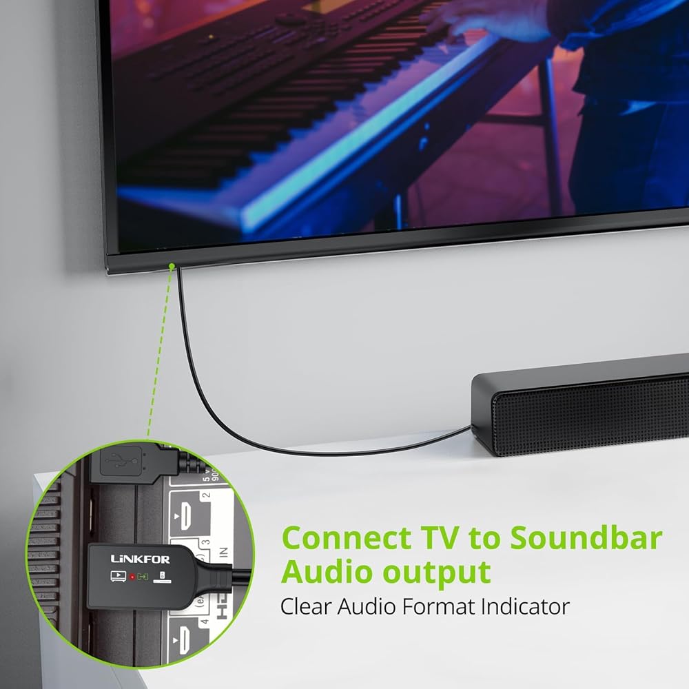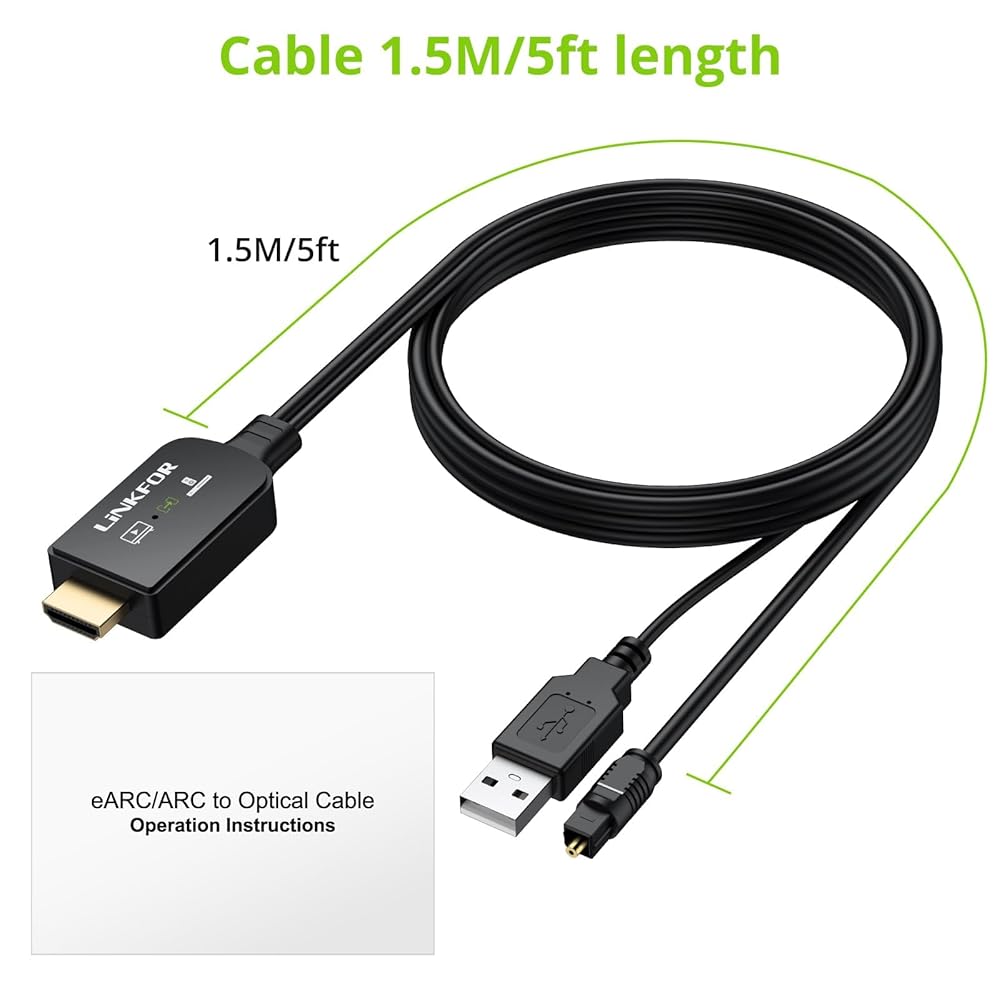 LiNKFOR eARC/ARC to Optical Audio Extractor Cable (1.5M/5ft), All-in-One HDMI ARC to TOSLINK Adapter, Supports 192KHz/24bit, DTS 5.1, Dolby Digital, Plug and Play for TV to Soundbar, Home Theater
