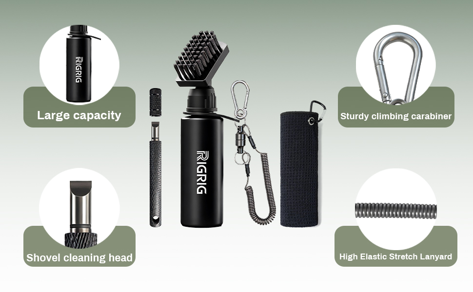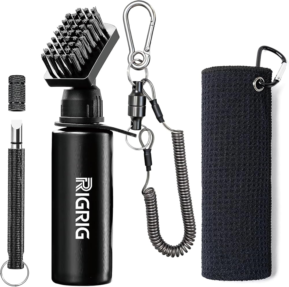 【Versatile Golf Club Cleaning Kit】RIGRIG premium 3-in-1 kit includes essential for keeping your clubs in top condition: a durable golf club brush, a precision golf club groove sharpener, a premium microfiber towel for quick drying, and a versatile magnetic clip for secure attachment and easy carrying. Compact and streamlined with no unnecessary extras, it features nothing but the core tools you need for effortless on-course maintenance—an essential accessory for every golfer.
