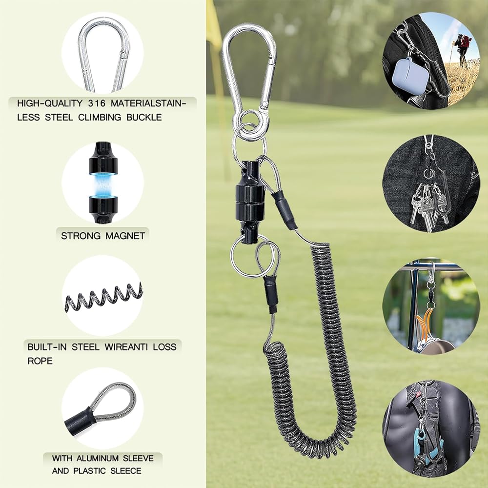 【Portable Magnetic Keychain: Golf & Daily Use】This Rigrig golf club cleaning kit also includes our magnetic keychain—featuring a retractable magnetic lanyard for instant, hassle-free access. Tough and versatile, this quick-disconnect keychain delivers unbeatable convenience: it works seamlessly on the golf course, and is equally perfect for daily use, outdoor cycling, photography, hiking, swimming, fishing, picnics, work, and more.