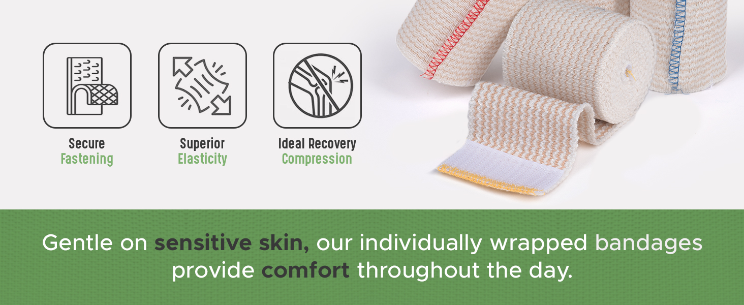 Premium Quality and Comfort with GT Bandages – GT bandages are latex free and made from high quality grown cotton and breathable elastic. Our individually wrapped bandages can be worn all day and are designed soft for sensitive skin. Our products provide comfortable stability and ideal compression that lasts longer than other brands