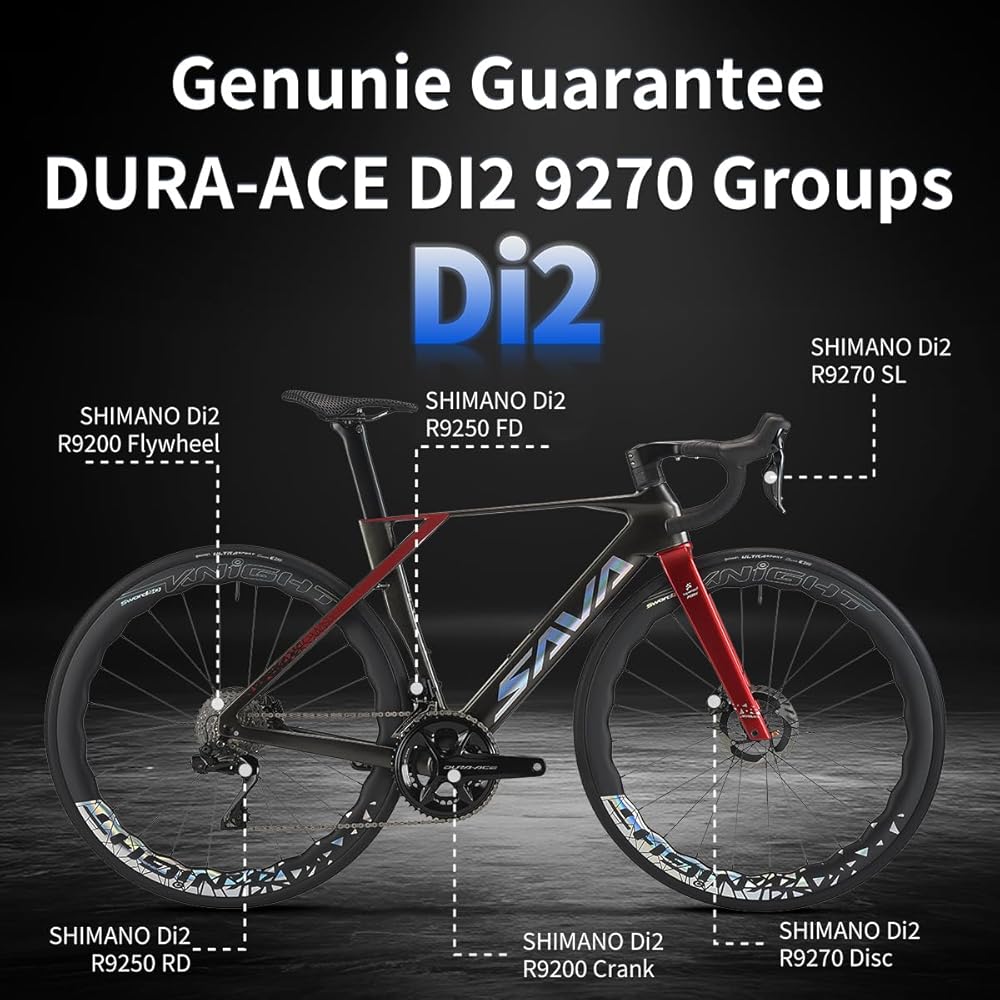 SAVADECK R9 Di2 Full Carbon Road Bike, Carbon Fiber Frame Racing Bicycle with Shimano R9270 24S Groupset, Hydraulic Disc Brakes, Ultra-Light Carbon Bike for Adults