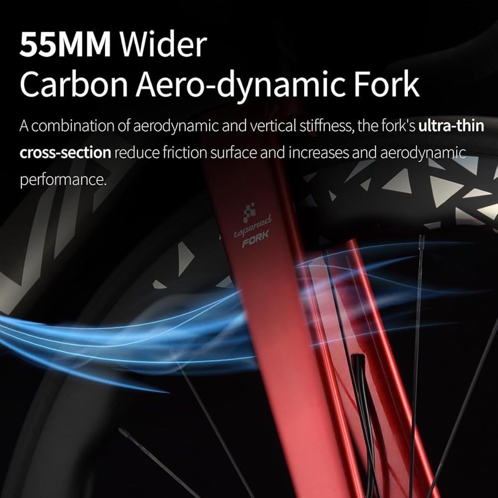 【Aero-Optimized Frame Design】Slice through the wind with ease. Our wind-tunnel-tested frame features integrated cable routing and aerodynamically shaped tubes to reduce drag, helping you hold higher speeds with less effort