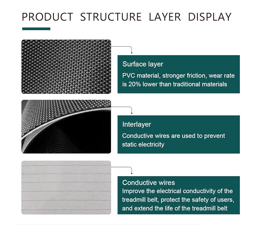 【MATERIAL QUALITY】- High quality PVC material, with a wear rate 20% lower than traditional materials. The texture is softer than other manufacturers' running belts, which can achieve better operation and reduce the failure rate of Treadmill due to excessive load.