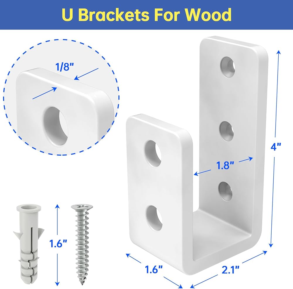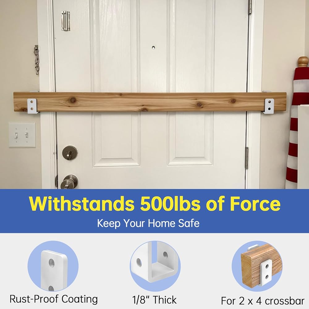 Quick, Tool-Friendly Installation: Pre-drilled holes in the U-shaped brackets for wood simplify setup. Pair with hooks for 2x4 wood or heavy-duty door safety bars for added stability.