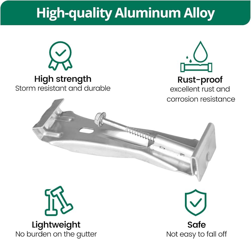 Premium Quality - The gutter hangers are made of high-strength 6063 aluminum alloy, which has excellent rust resistance. They are durable and effective in supporting gutters even during heavy storms, preventing sagging due to heavy rains