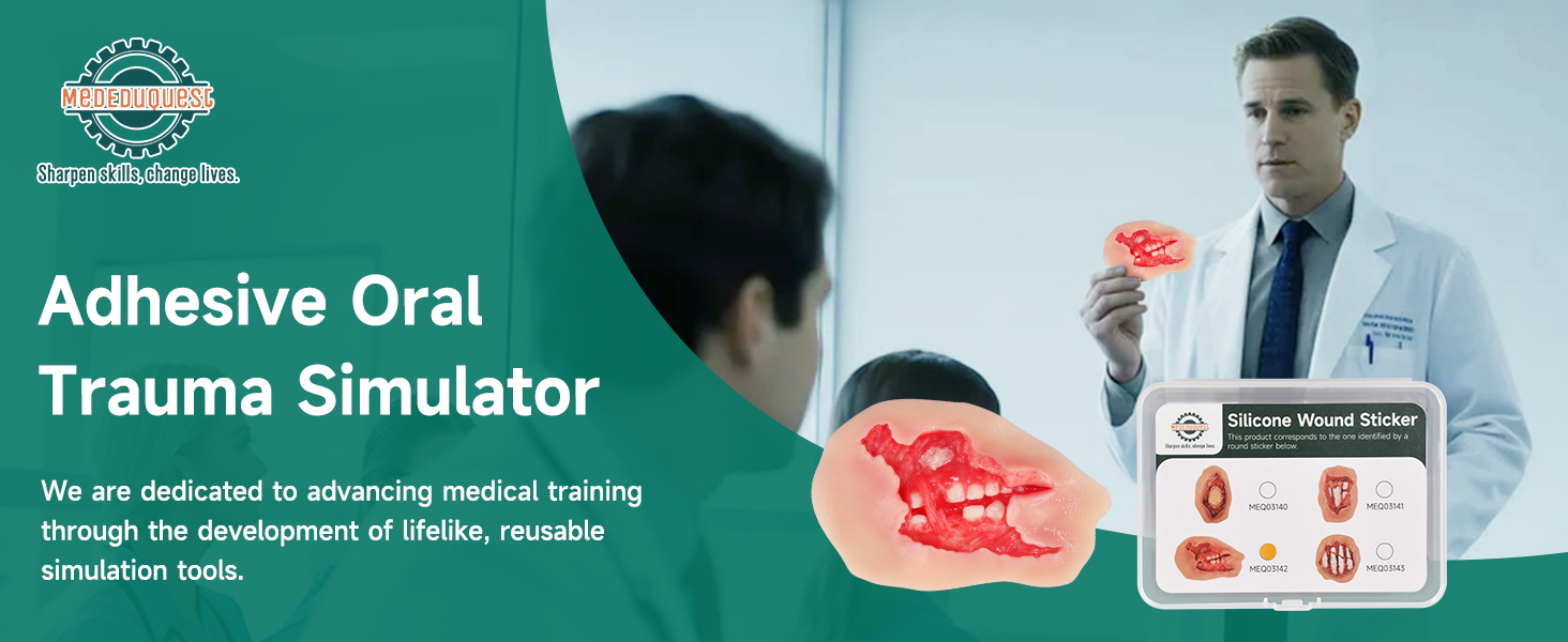 Realistic Trauma Design: Oral trauma wound packing trainer features detailed simulation of gingival laceration, exposed tooth root, and mouth corner tear for comprehensive trauma training.