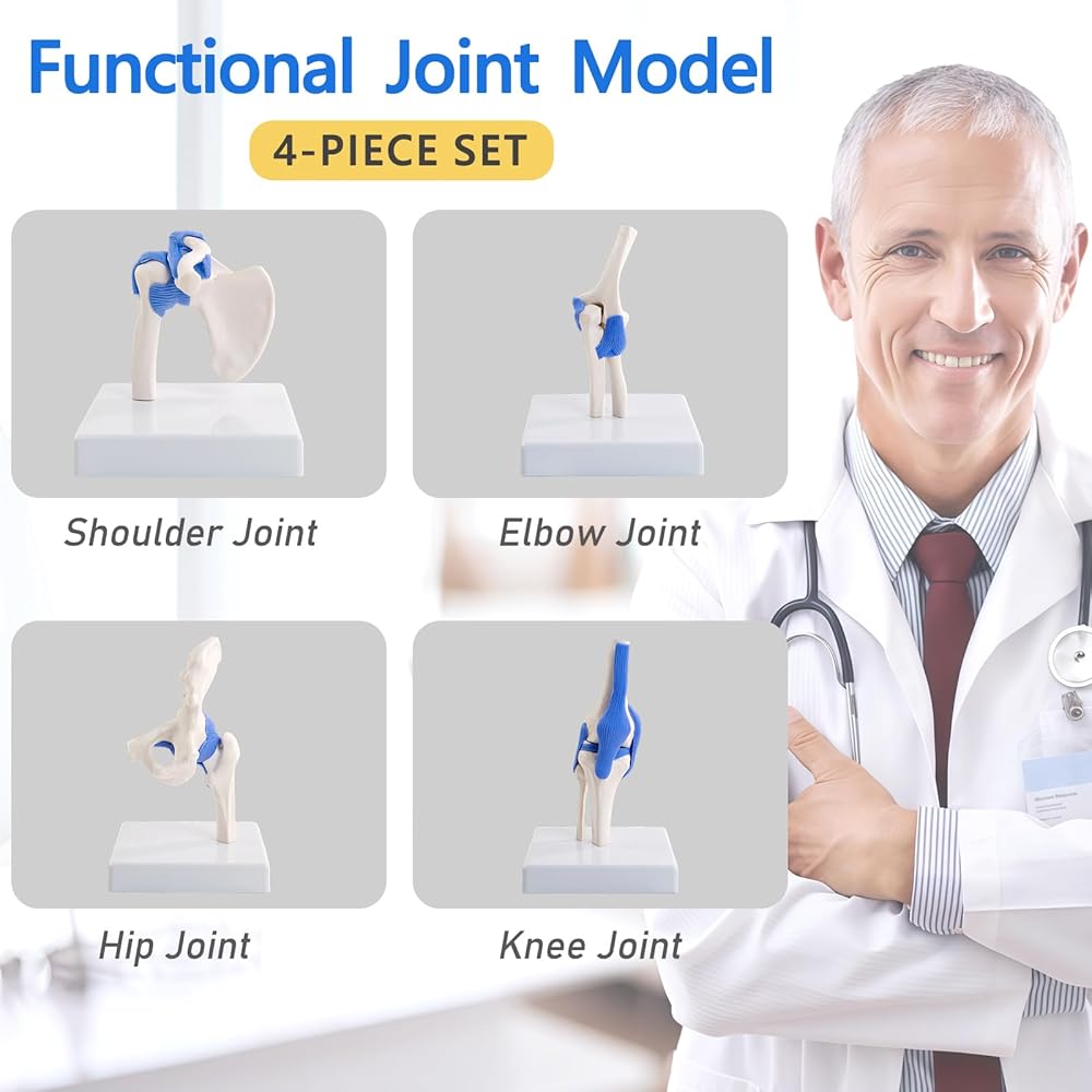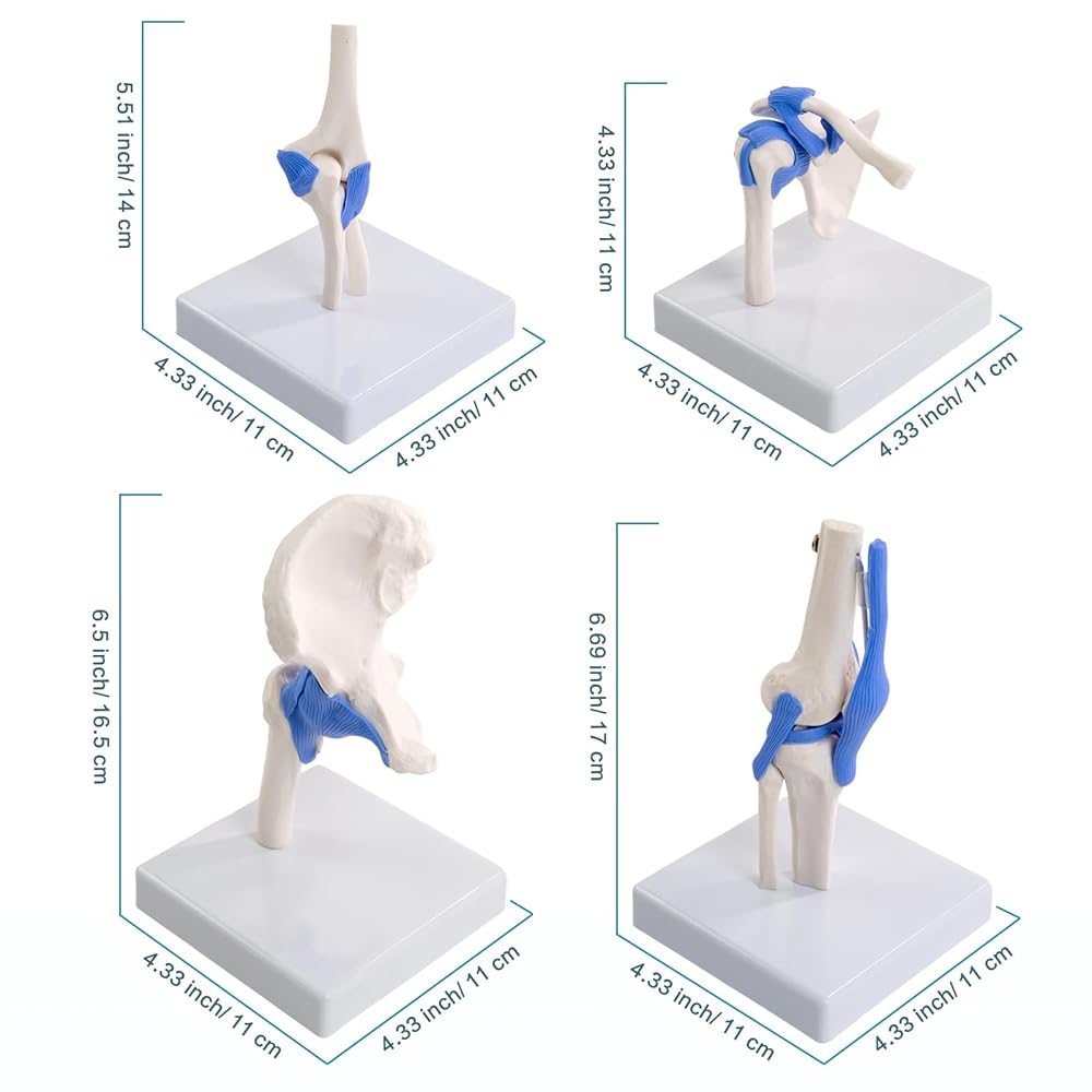 Complete 4-Joint Teaching Set: Includes anatomically accurate models of the shoulder, elbow, hip, and knee, presented together to give a clear, comparative view of major human synovial joints.