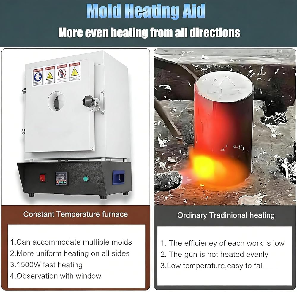 • 【Versatile Use】Whether you're working in a home studio or a professional setting, perfect for a wide range of applications including optimized heating and dewaxing of metals in jewelry plaster molds, providing a stable high-temperature environment for smooth and efficient casting processes.