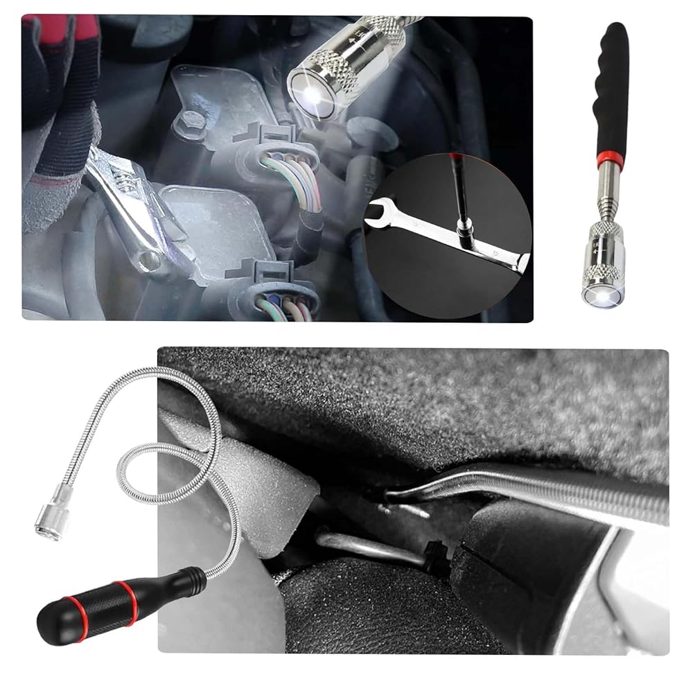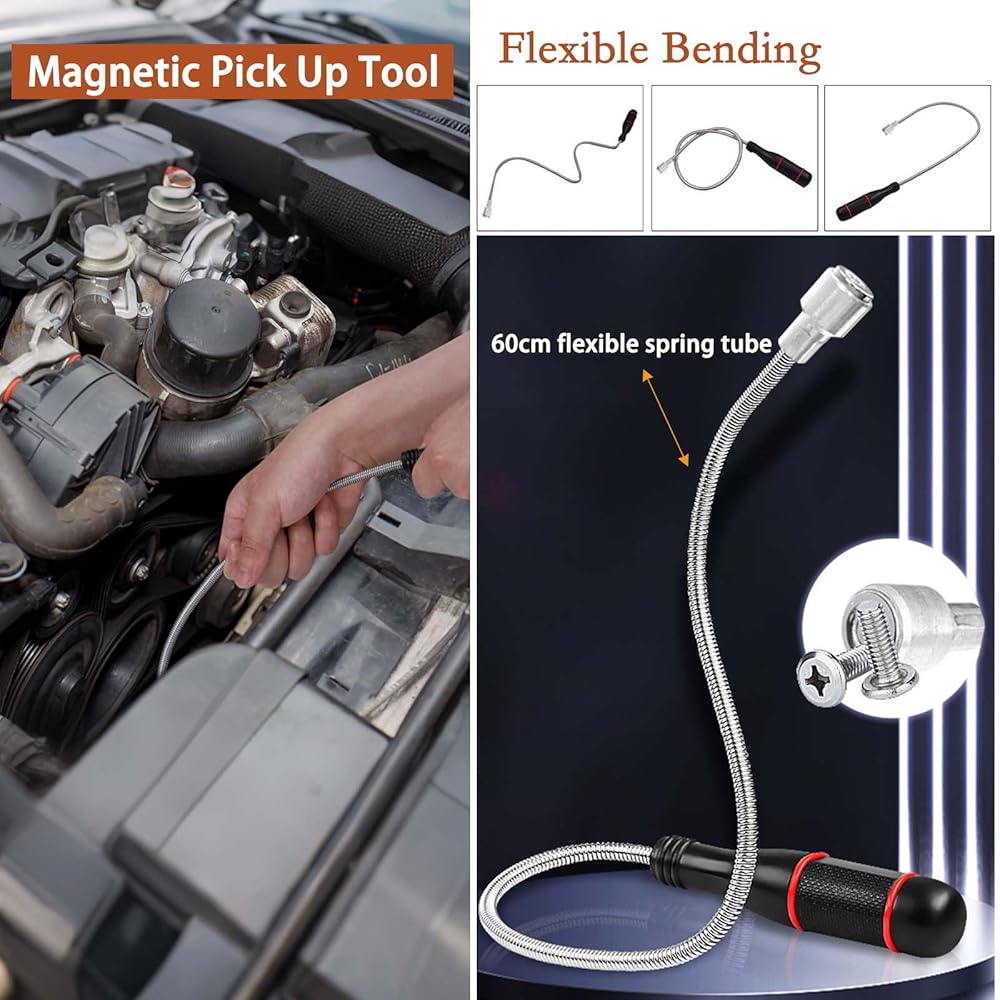 Telescoping Magnetic Pickup Tool Set,Telescopic Inspection Mirror,Flexible Bendable Spring Magnet Stick,LED Flashlight Pickup Rod, Cool Gadgets for Men
