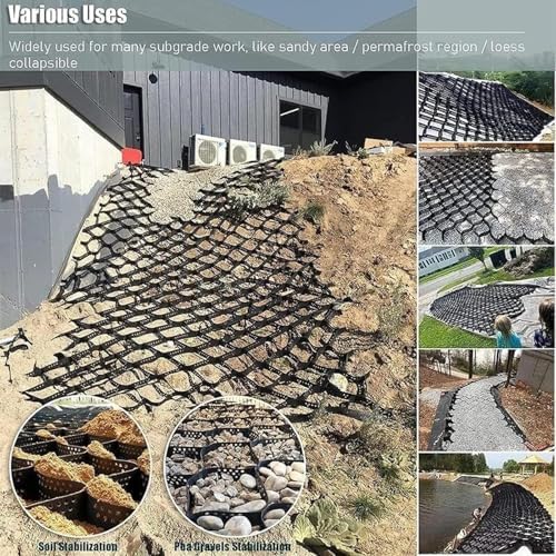 • 5.Easy to Install and Cut: Simply secure the Geogrid to the ground, expand it, and fill it with soil, grass, sand, or gravel. Customizable to fit your needs, this Landscape Grid is designed for durability and versatility in various outdoor applications, making it an excellent choice for garden, driveway, or erosion control projects.