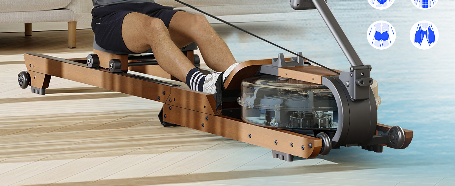 Full-Body Muscle Workout: Rowing is a great full-body exercise. Rowing targets over 90% of the muscles in your body, training your shoulders, back, core, arms, hips, glutes, and legs in just 20 minutes. It's great for your heart and lungs. This water rower is the ideal fitness equipment for home gyms