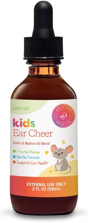 SPRIGS Kids Ear Cheer Tincture to Support Healthy Ears, 2 Fl Oz | Gentle Soothing Formula with Garlic Oil & Organic Mullein to Support Comfort | Easy to Use & Convenient Dropper for Children