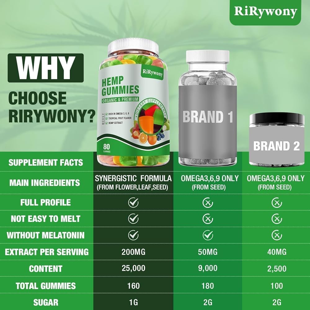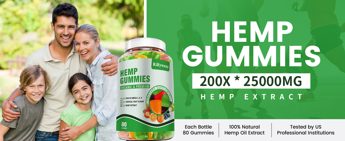 UPGRADED FORMULA - Upgrade RiRywony Health Hemp Gummies Formula: Fatty acids OMEGA 3-6-9. Extra vitamin C, E supplements to improve the body's nutritional needs. Promote overall health in an efficient manner,make you full of energy every day.