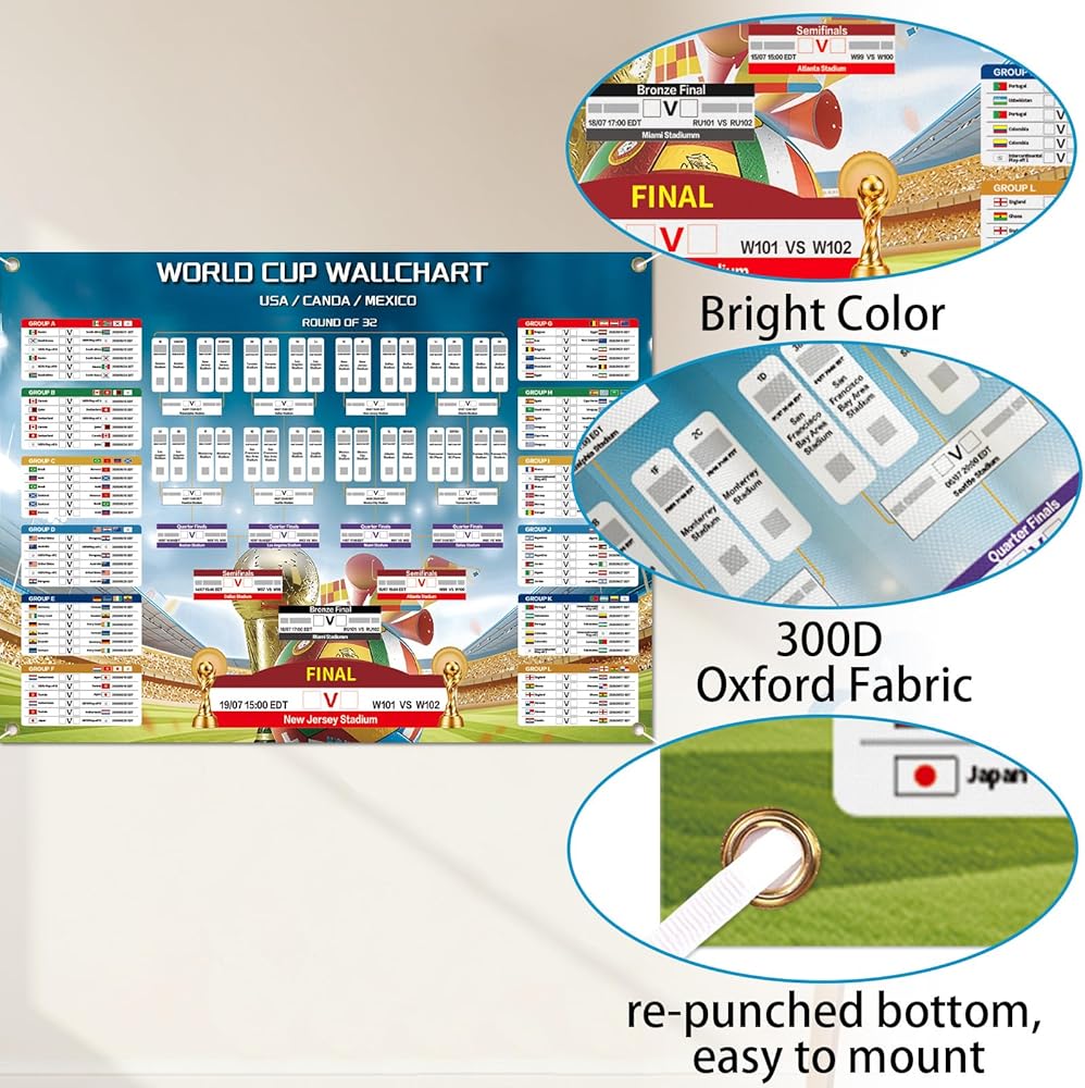 Large & Clear Display for Easy Tracking: Measuring approximately 47 x 35 inches, this generously sized 2026 soccer schedule banner provides a clear, detailed layout of all 48 teams and matchups, for prominent display.