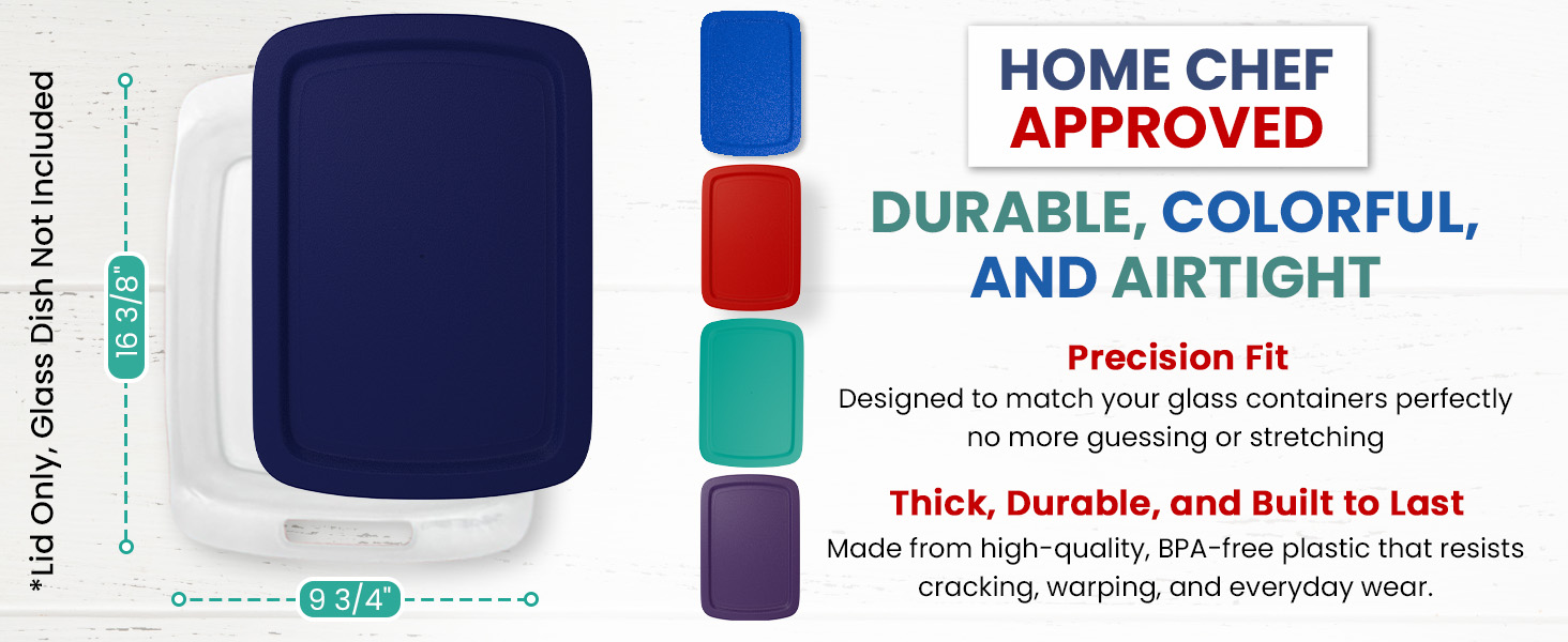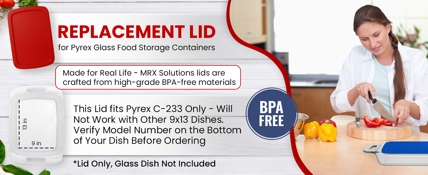 FITS PYREX MODEL C-233: This MRX Solutions replacement lid fits Pyrex Easy Grab 3-Quart 9x13" glass baking dishes Model #C-233. It is compatible with the longer dish style (approx. 16.25" total length handle-to-handle) featuring cut-out handles.