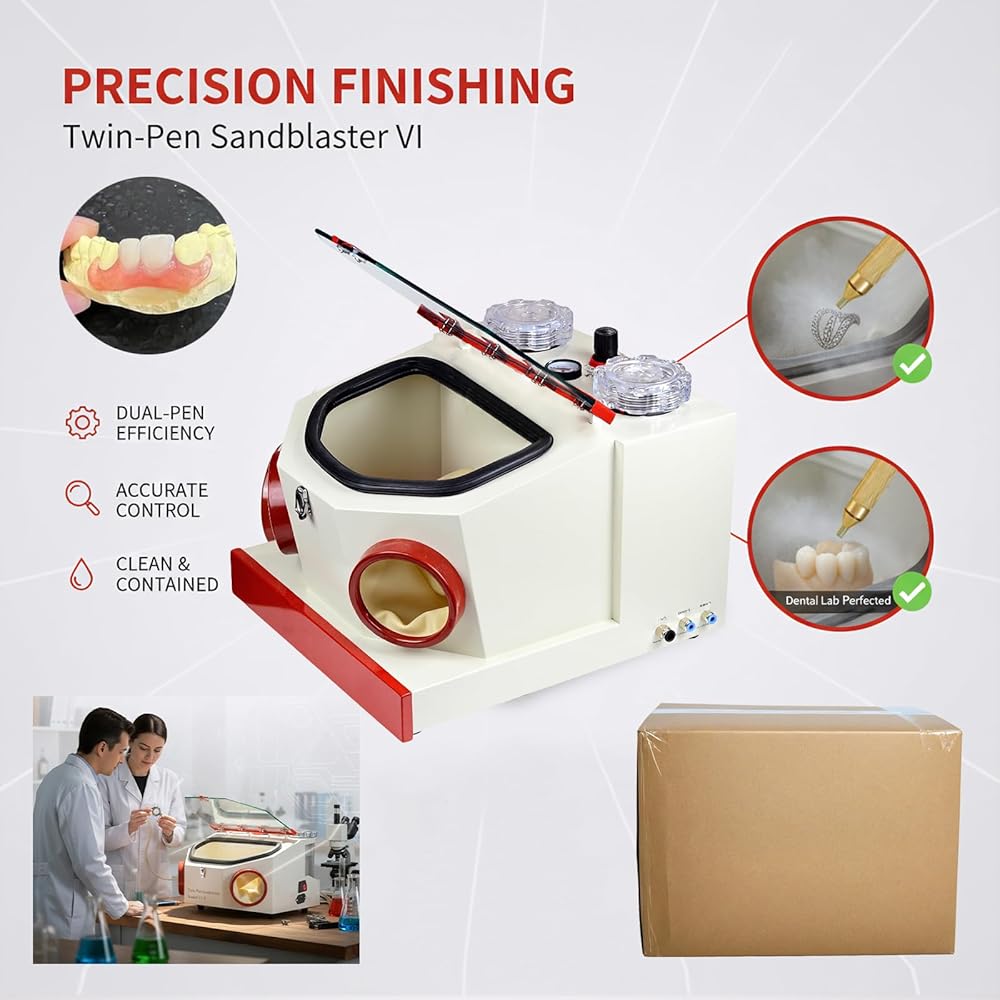 【Efficient】: Our sandblaster is equipped with two pens, which can used for materials of different hardness under fast and quiet conditions, thereby improving production efficiency.