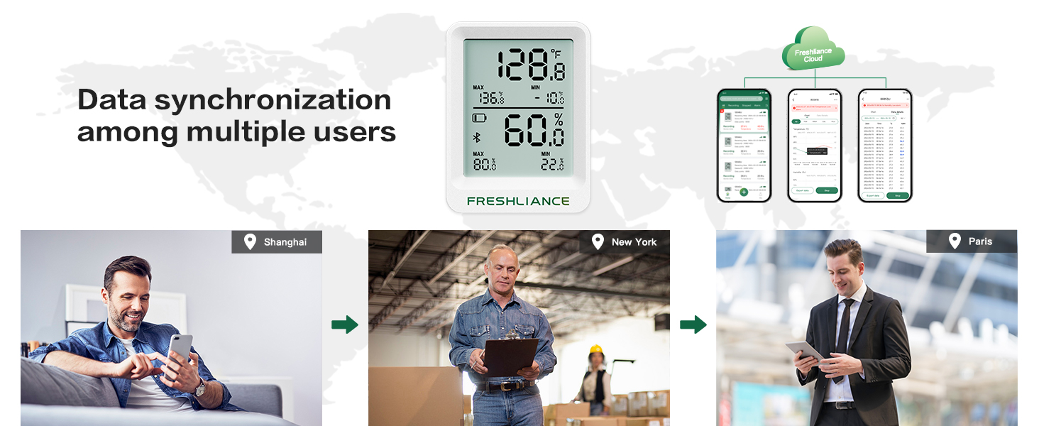 Data Sharing: BlueTag TH20 temperature and humidity recorder is paired with Tkeeper APP via Bluetooth, self-contained Bluetooth sensor data could be read by mobile devices. Support remote data viewing and synchronization online among multiple users from cloud.