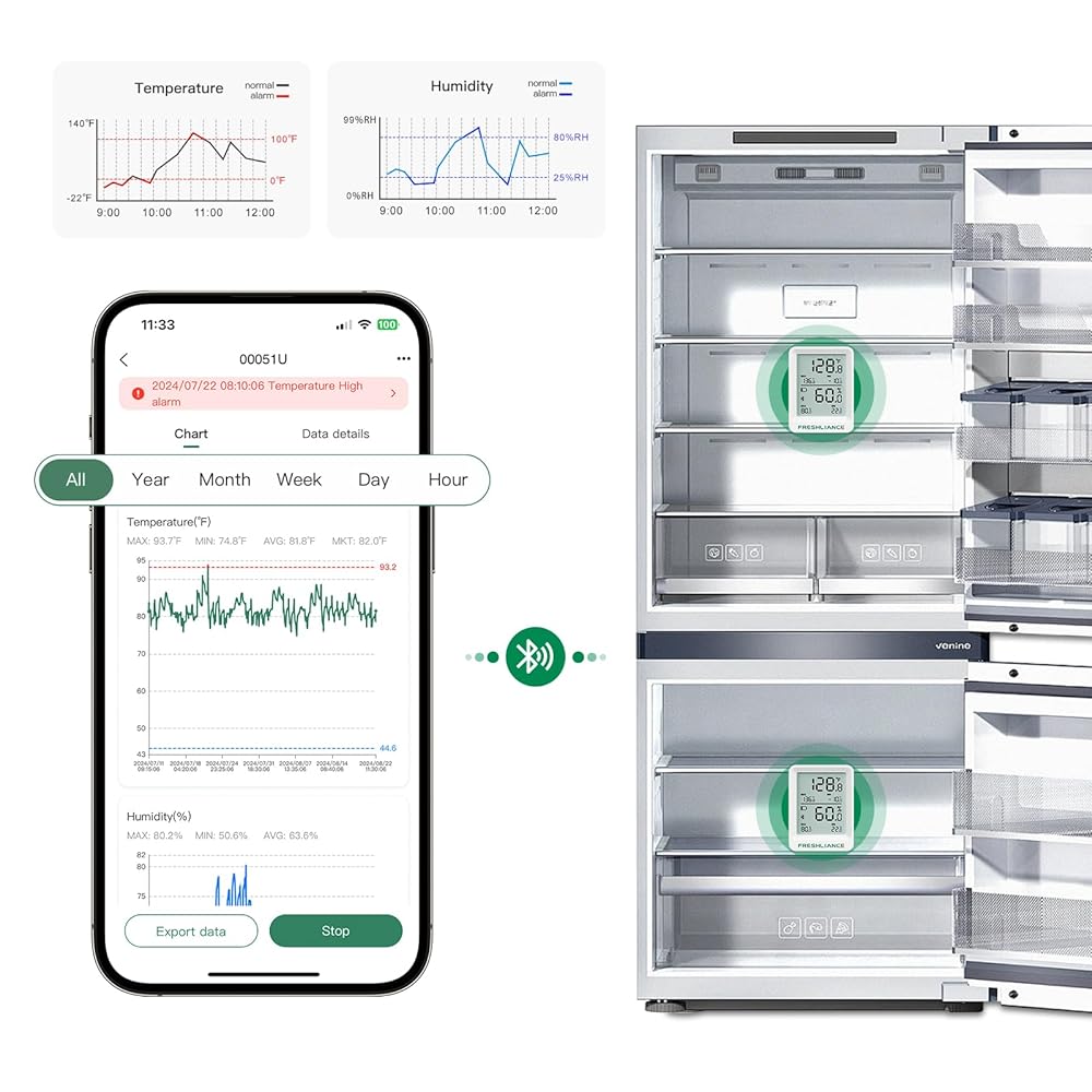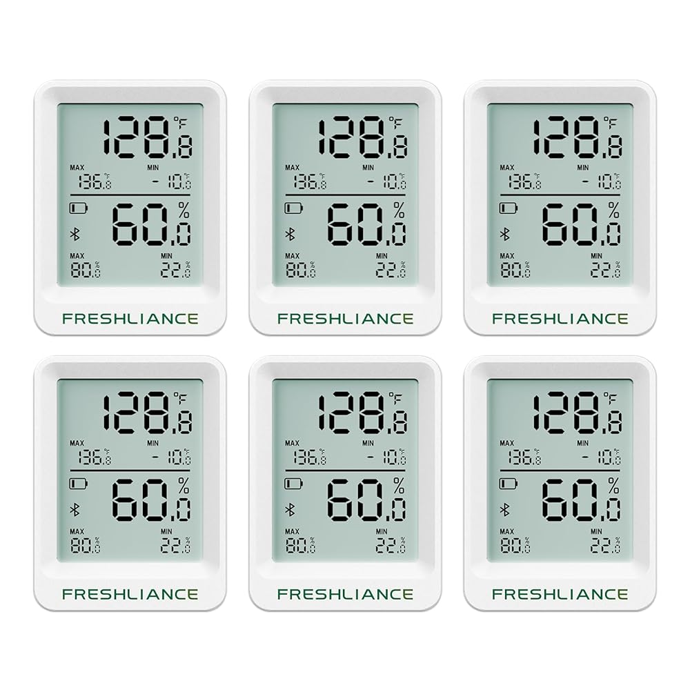 Freshliance Bluetooth Temperature Humidity Data Logger Recorder, Refrigerator Freezer Thermometer Hygrometer, Digital Remotely Temperature Humidity Monitor with APP Data Analysis, BlueTag TH20, 6pack
