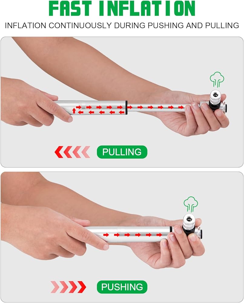 Versatile Functionality: Equipped with a hand pump with Ball Pump Needle, this air pump is ideal for inflating bike tires and sports balls, meeting all your diverse inflating needs as a reliable pump inflator.