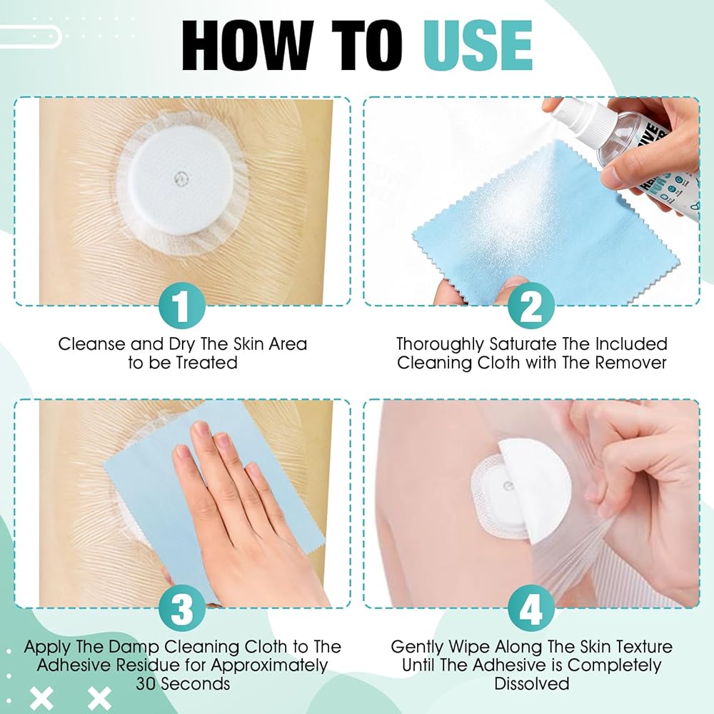 Multi-Purpose: In addition to medical dressings, adhesive remover skin is also suitable for cleaning residues from various adhesive products such as sports tape, transdermal patches, blood glucose monitors, and ostomy bags. The included dedicated cleaning cloth enhances ease of use, realizing the multi-purpose value of this product
