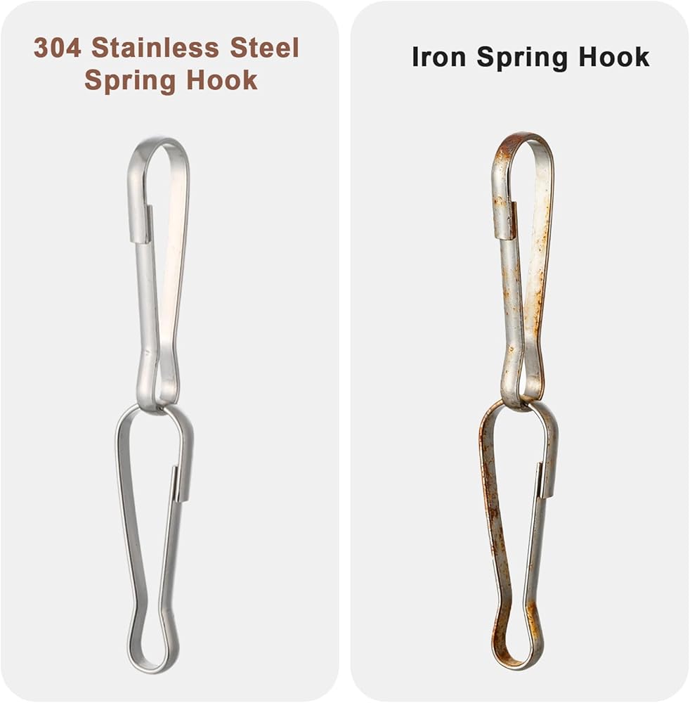 Metal Spring Hooks, 12 Pcs Durable Stainless Steel Spring Hooks Buckles for Flags Replacement Halyard Hanging Clips, Flag Clips for Flagpole, Bird Feeders, Keychain, Backpack, Camping Accessories