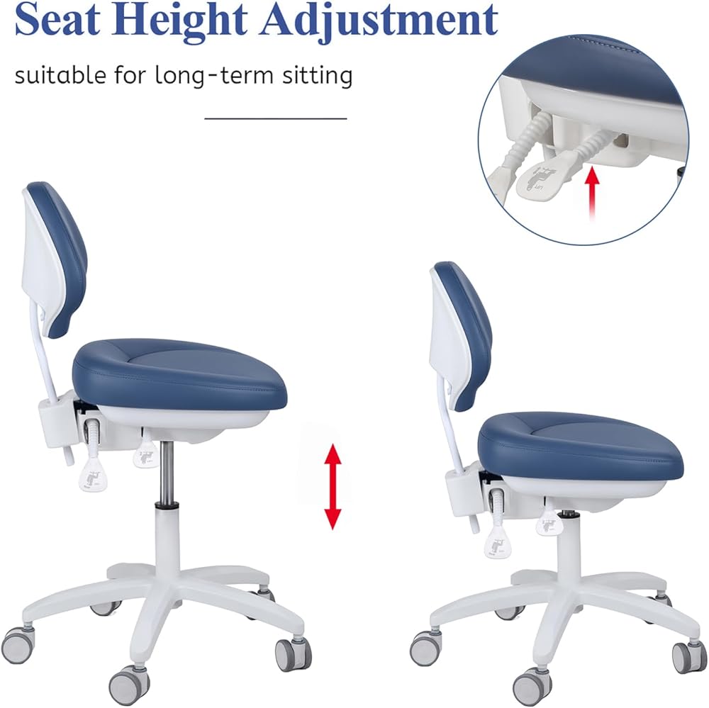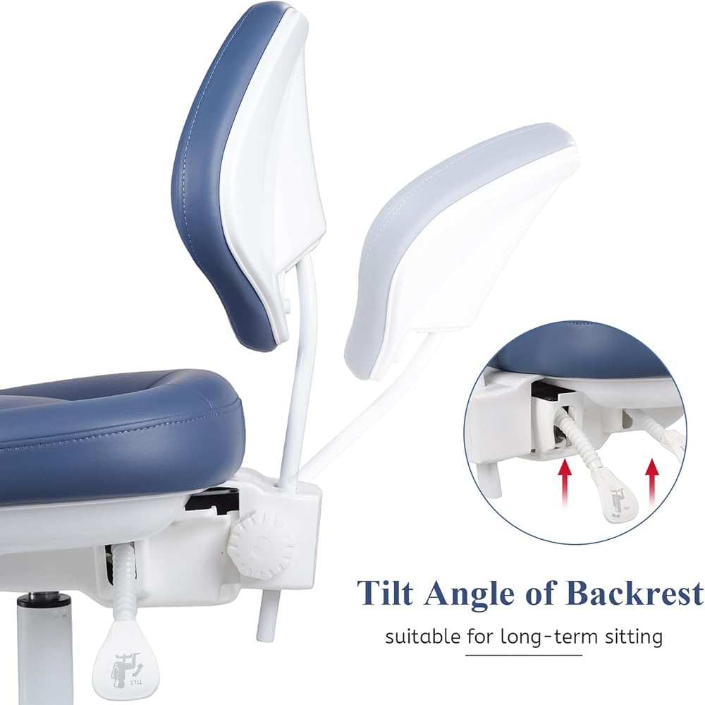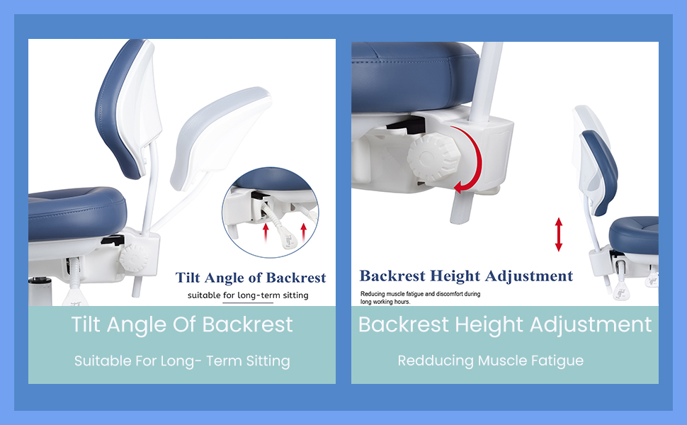 [Ergonomic Chair]The dental stool is ergonomically designed with an adjustable tilt backrest, providing support for your back and neck, reducing fatigue and ensuring maximum comfort during long-term use