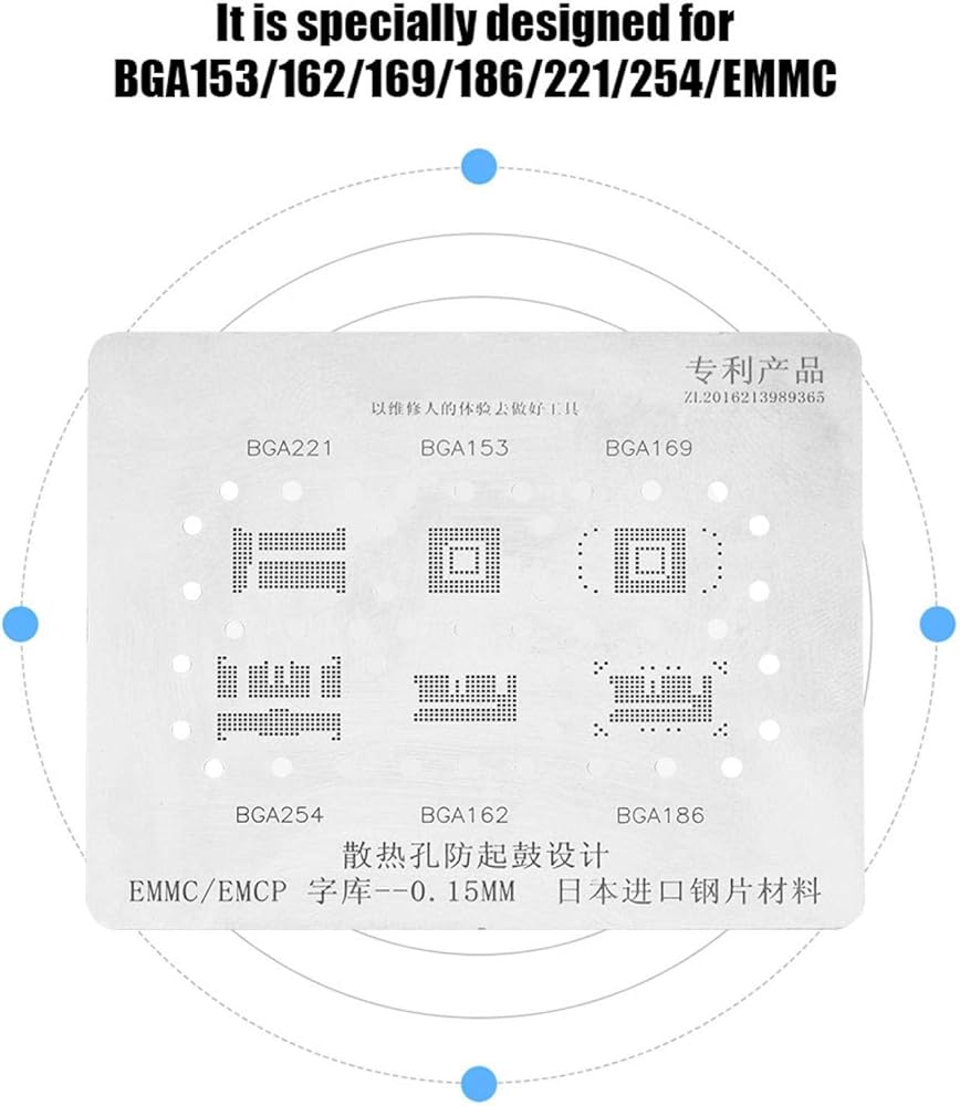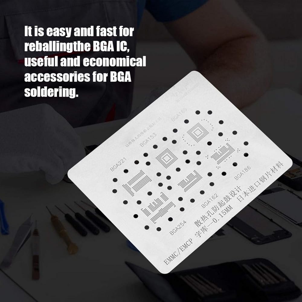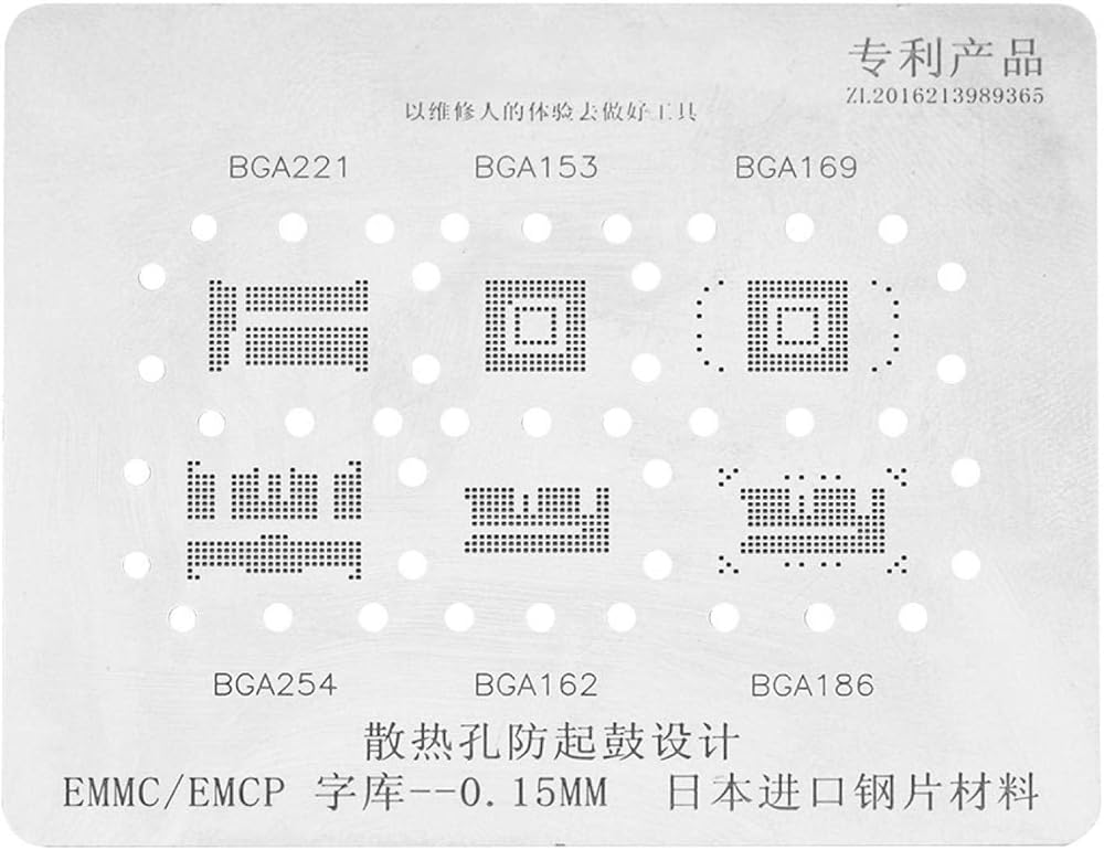 • APPLICATION: 1.6 in 1 net stencils is specially designed for BGA153/162/169/186/221/254/EMMC, compatible with BGA221, BGA153, BGA169, BGA254, BGA162, BGA186.
