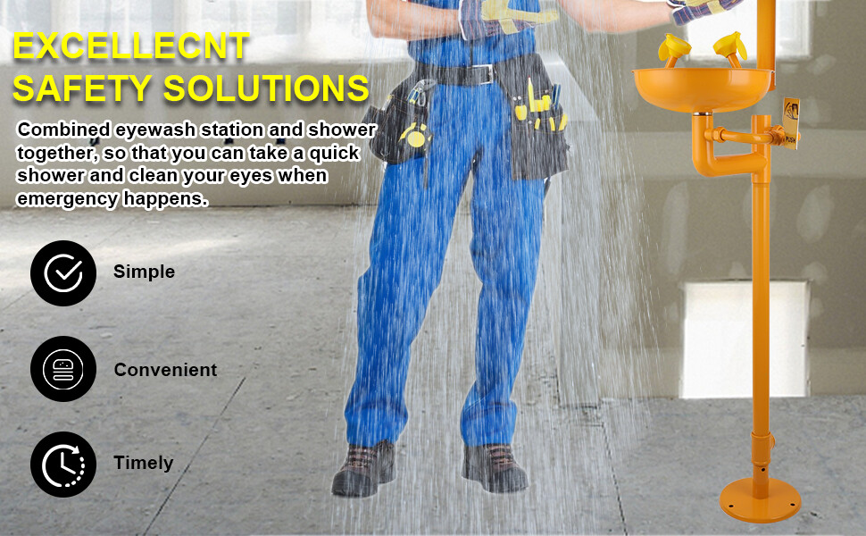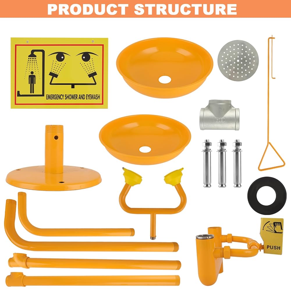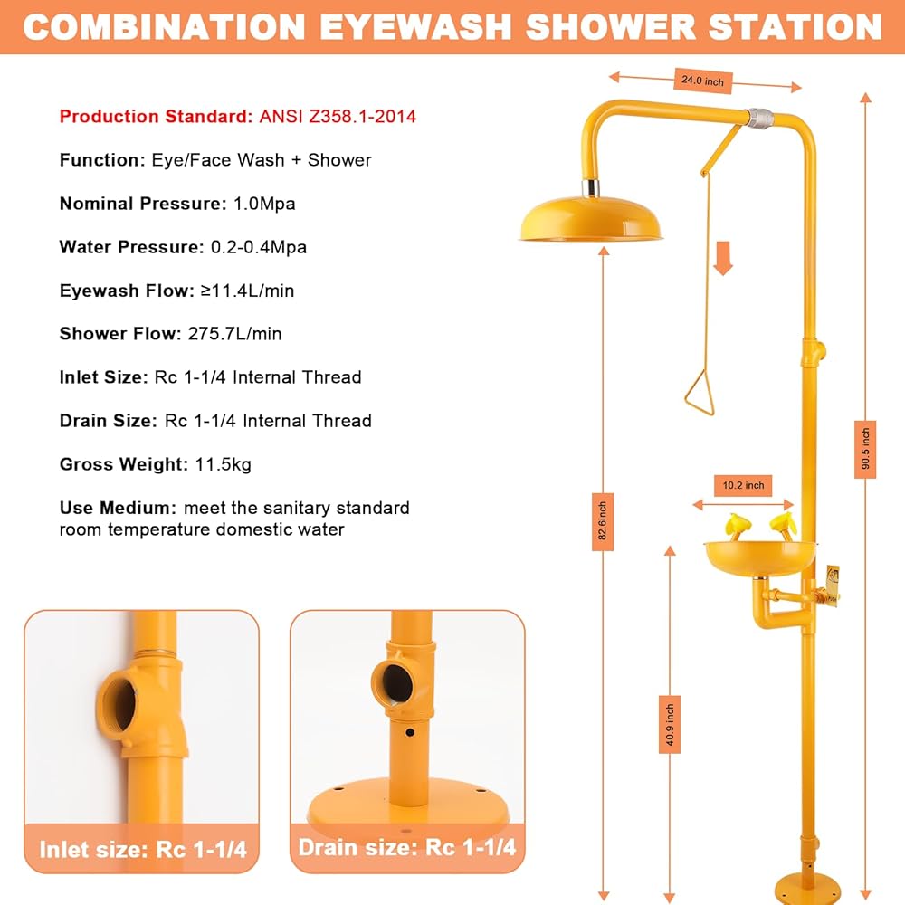 HIGH STANDARD: The product complies with ANSI Z358.1-2014 (certified by OSHA). The water flow rate of the eye wash nozzle and shower far exceeds the counterparts used. Installation and use are simple.