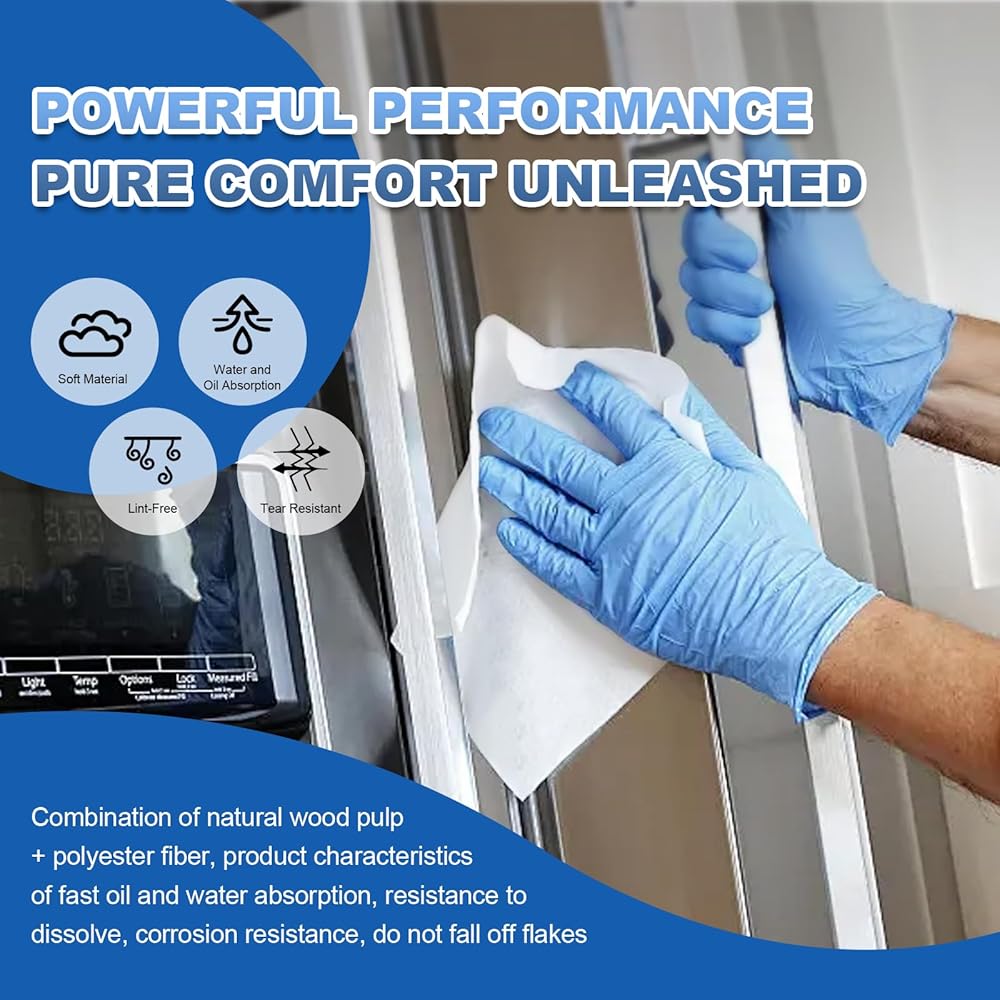 Features:Nonwoven wipes have excellent absorbency, effectively absorbing water and oil, making them perfect for spill control. Ensures virtually streak-free cleaning with minimal lint or particles, ideal for precision cleaning of electronics and laboratory glassware.