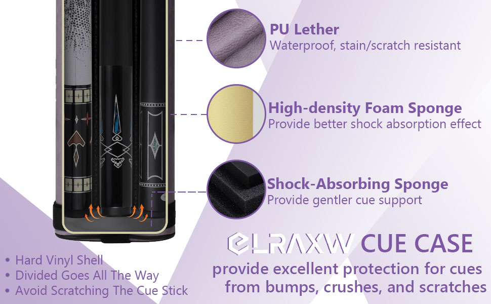 【Excellent Protection for The Cues】: The pool stick case has a hard vinyl shell and base. The internal oval separated molded tubes is made of high-density foam sponge, which can better resist external impact and internal friction, and protect your pool stick from bumps and scratches