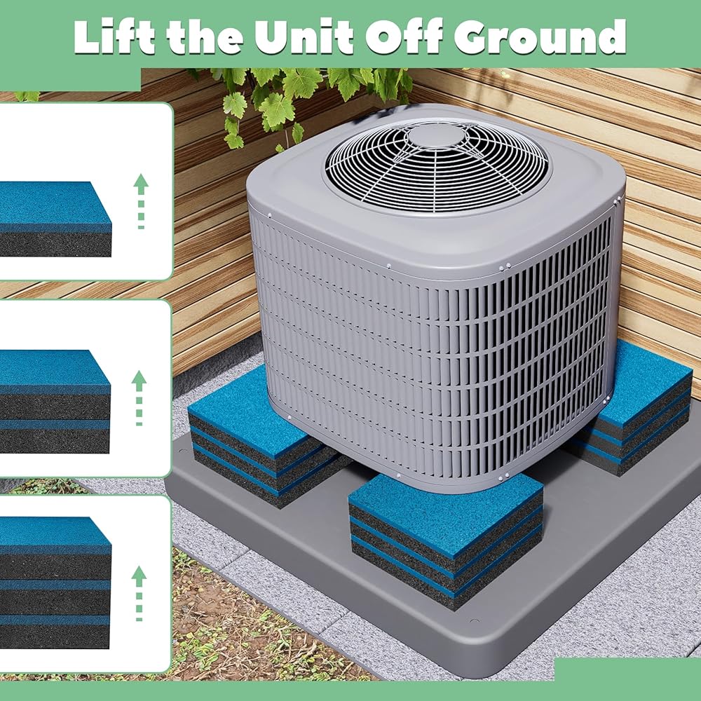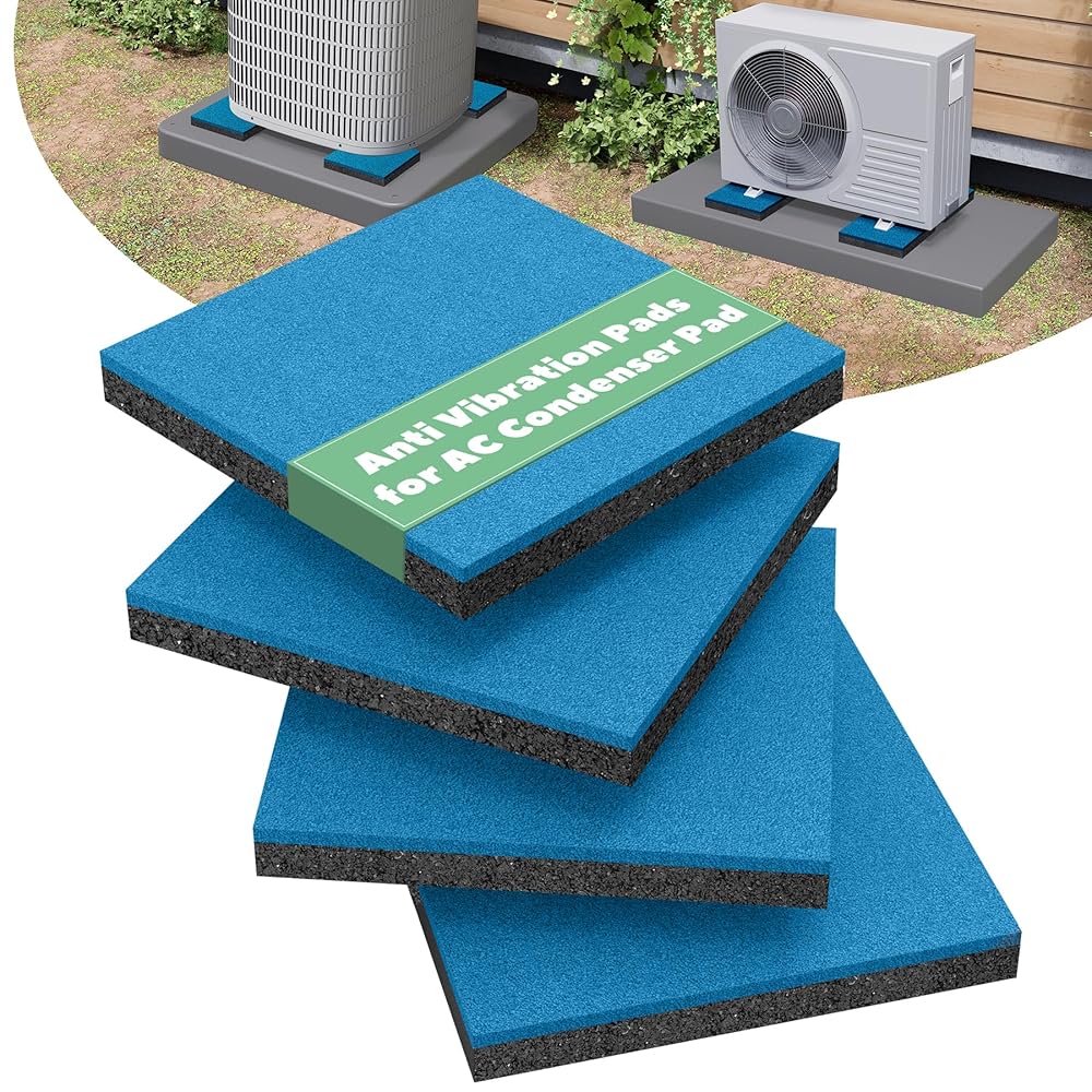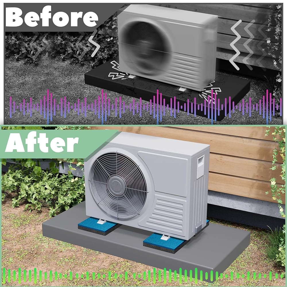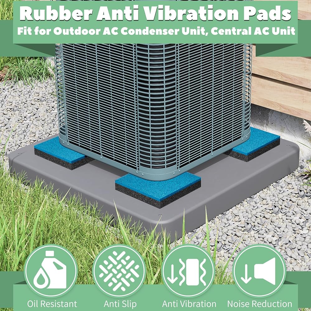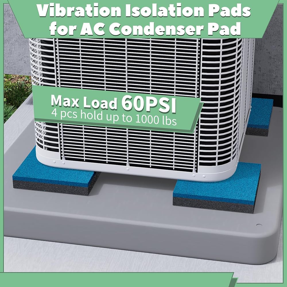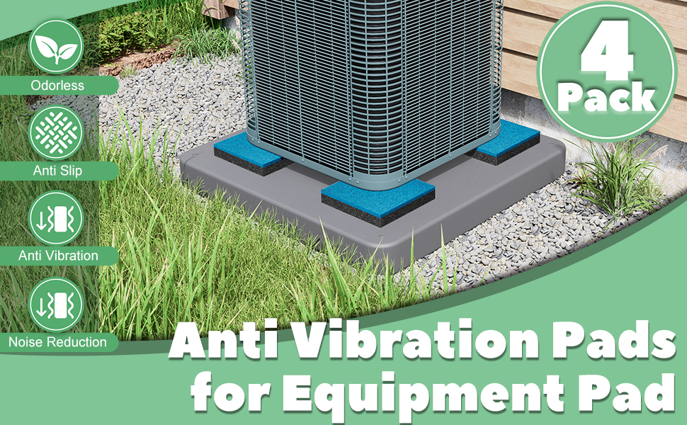 Wide Application: The rubber anti vibration pads are suitable for installation on most equipment pads and are applicable to support heavy equipment such as mini split air conditioner, central air conditioner, HVAC systems, and air compressors.The odorless feature allows for indoor use, such as on treadmills and exercise bikes.