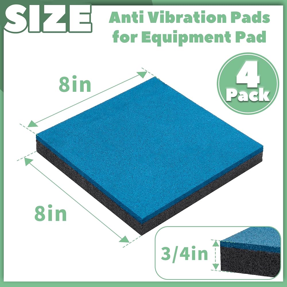 Universal Size: The vibration damping pads measures 8"W x 8"L x 3/4"H.Universal size design makes the rubber pads compatible with most mini split pad and equipment pad.With a max load of 60 PSI, and 4 pads can support up to 1000 lbs, ensuring stable support for heavy duty machines.