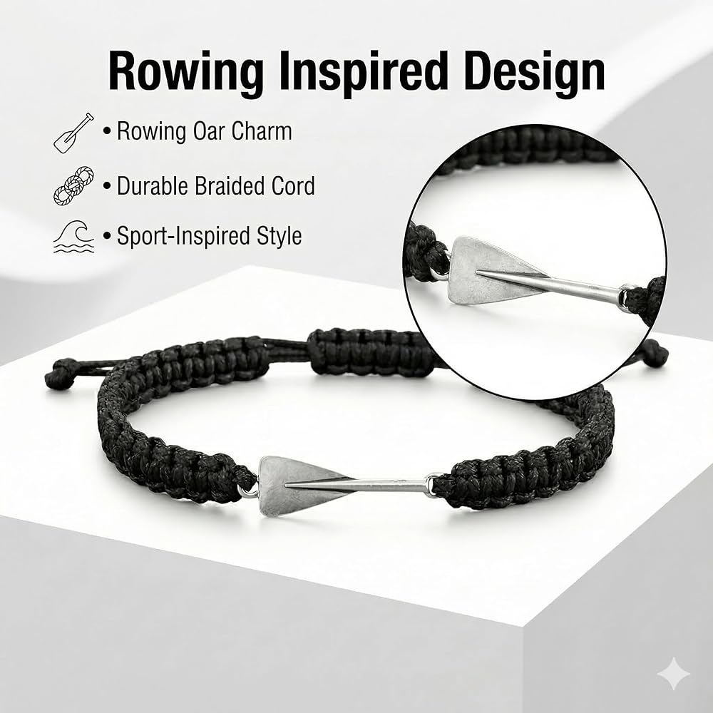 Stylish Nautical Bracelet Design: This bracelet combines a sporty rowing theme with a beachy rope style, making it a great everyday piece for men who enjoy outdoor activities, boating, training, or simply want a subtle reminder of their favorite sport.