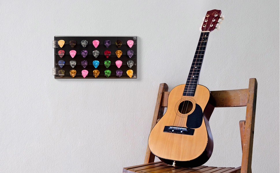 Striking Contrast: The black background design strikingly enhances the colors of your guitar picks; creates a visually appealing contrast that makes each pick stand out; turning your collection into a vibrant showcase