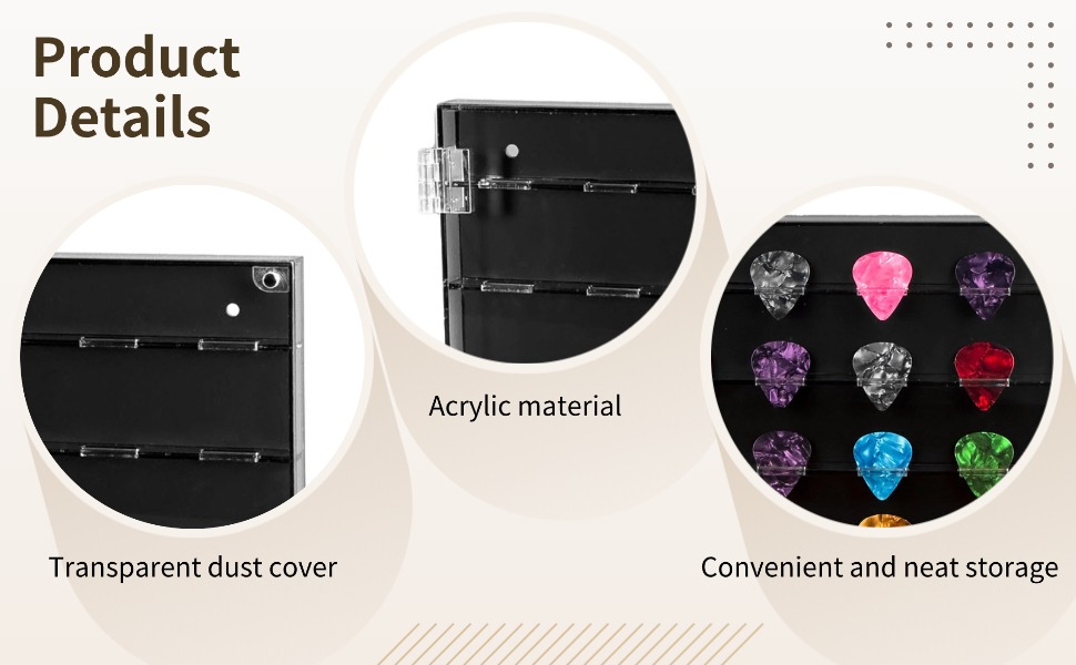 Secure Protection: Features a visible lid that prevents dust and loss; the acrylic material further guards against dust and scratches; ensuring your picks remain pristine and protected, ready for every strum and performance
