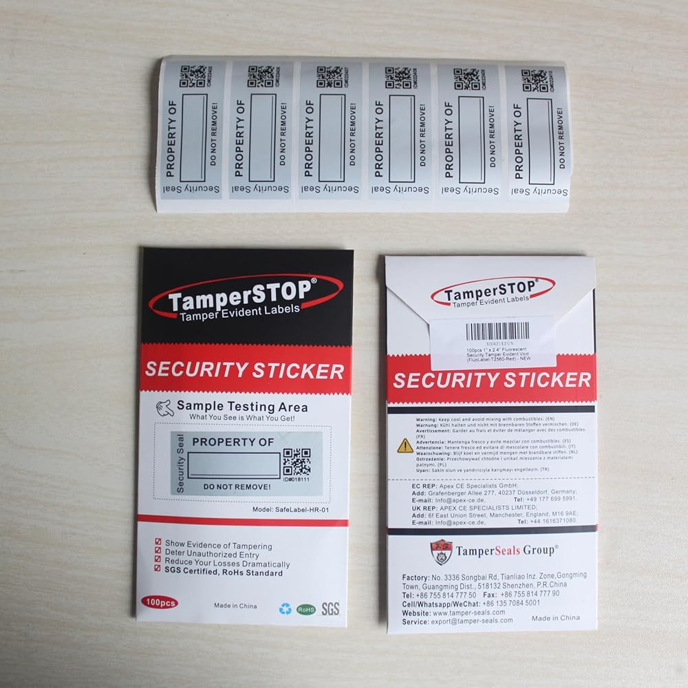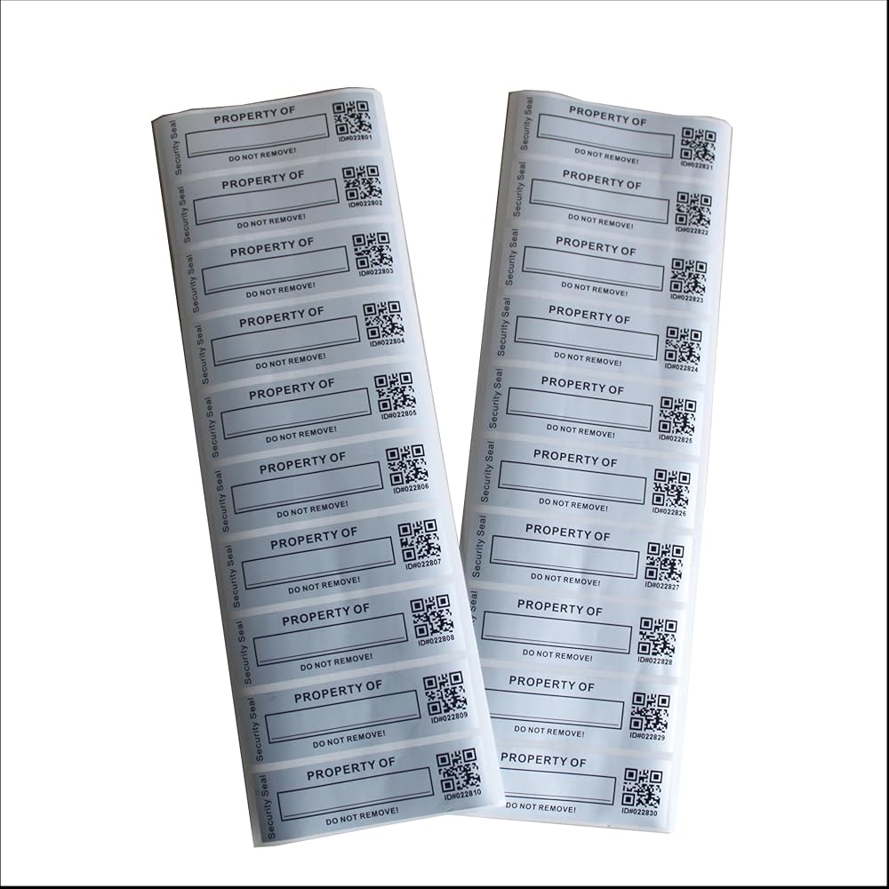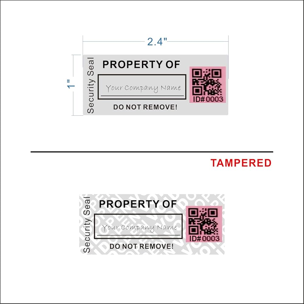 100pcs 1" x 2.4" Custom Printable Tamper Evident Security Asset Tags, TamperSeals Group - Industrial Property ID Labels for Inventory of Equipment (Matte Silver Metalized, QR Code, High Security Seal)