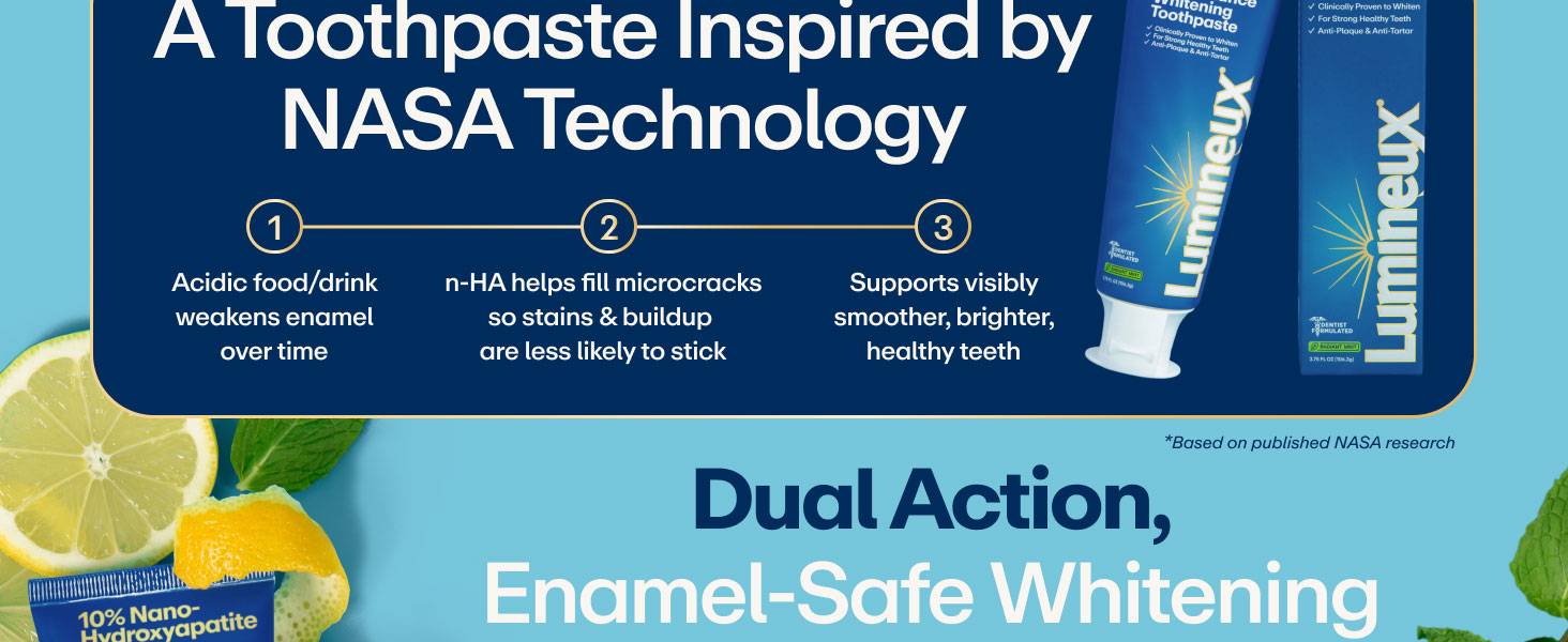 NASA-DEVELOPED TECHNOLOGY: Nano-hydroxyapatite was originally developed by NASA to protect astronauts' teeth and bones in harsh space conditions. This fluoride-free formula helps strengthen enamel using the same minerals naturally found in teeth.