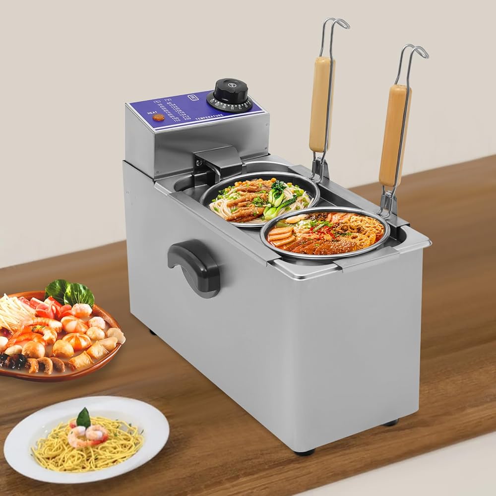 This efficient noodle cooking machine will bring you great profits with its practical and convenient features. It is made of high-quality stainless steel, which is sturdy and durable. The powerful heater, double-hole design, and adjustable temperature ensure that the pasta is heated evenly, which greatly improves your cooking efficiency while maintaining the taste of the meal, making it an ideal choice for your restaurant and cafeteria, helping you to easily manage a variety of pasta dishes and show your professional cooking style.