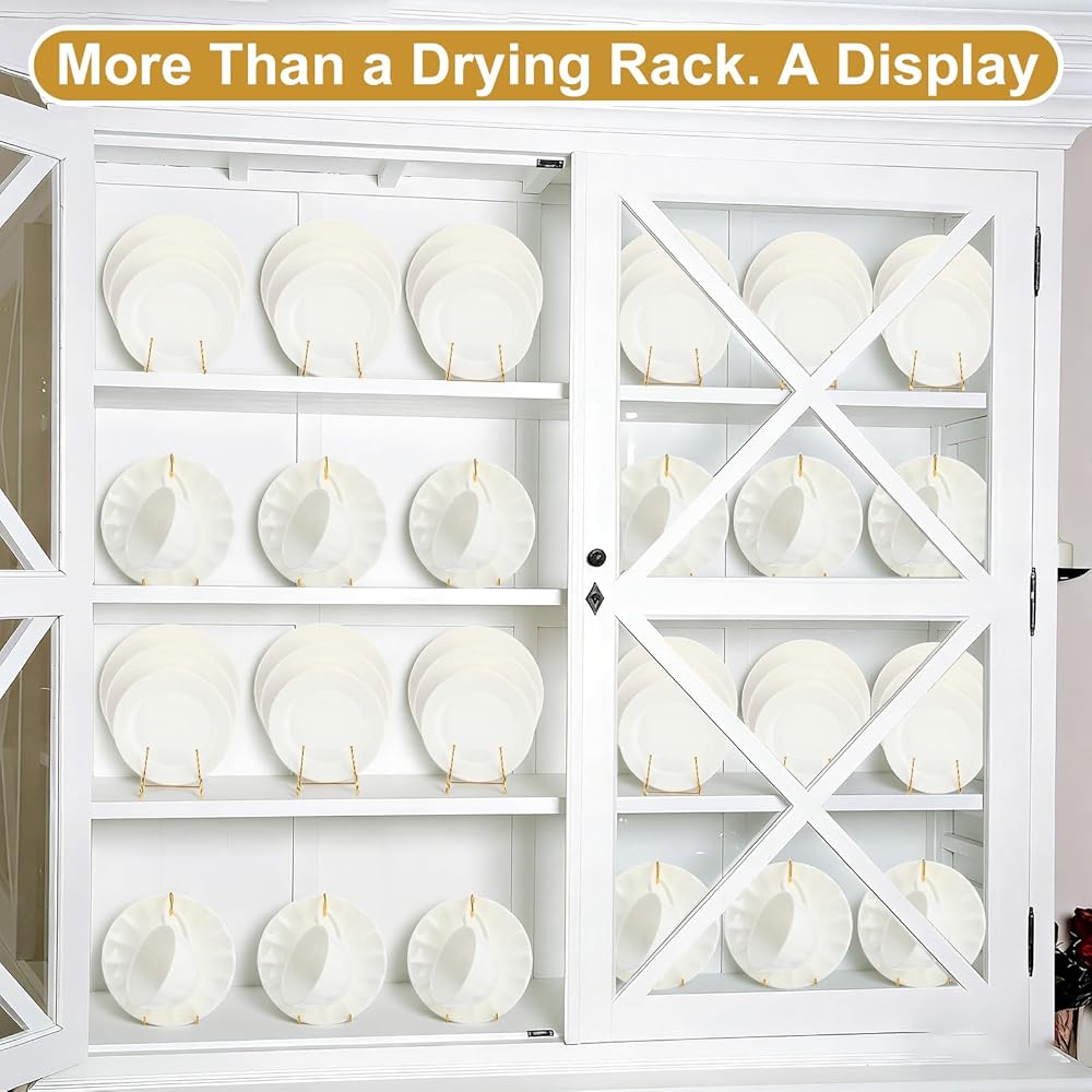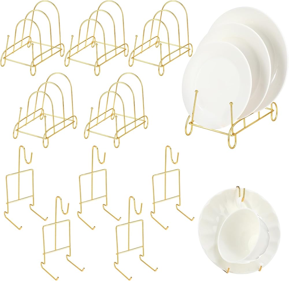 The gold plate holder and cup and saucer display stands are versatile and can hold plates, platters, bowls, tea cups, mugs, coffee cups, etc., combining practicality and aesthetics, it is suitable for displaying elegant dishes on your kitchen counter, china cabinet or hutch, it can also give your kitchen more storage space and make it more organized