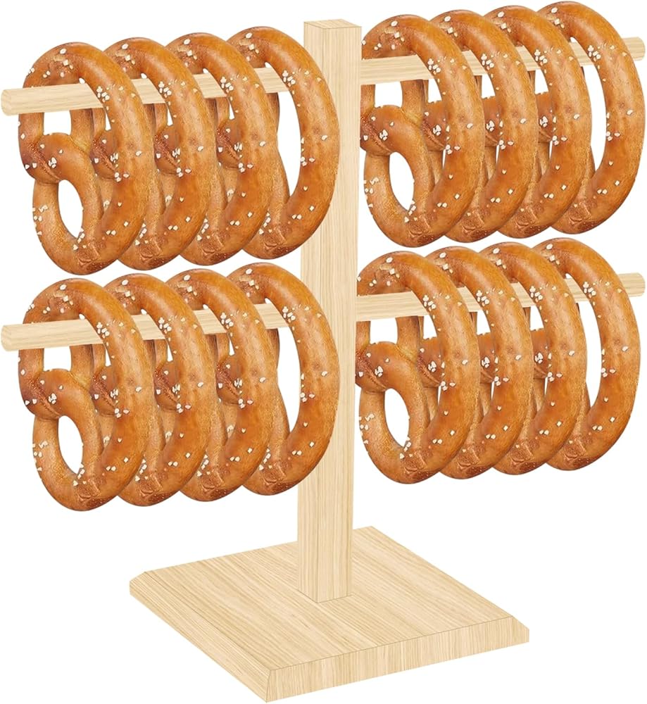 Natural Bamboo Construction & Sturdy Design: Crafted from premium bamboo, our pretzel holder combines natural beauty with enduring strength. Its sturdy, warp-resistant build ensures reliable support for your treats. Ideal for those seeking an eco-friendly pretzel stand or bamboo kitchen organizer that lasts.