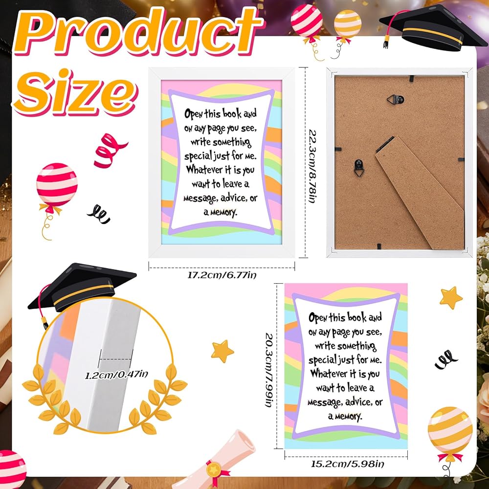 • Complete Gift Set: the package includes a colorful grad parties table decor with a vibrant slogan card and an 6.77 x 8.78 inches/ 17.2 x 22.3 cm white wooden picture frame; This all-in-one set is ideal for both graduation and party tabletop decorations and can be framed as a sentimental keepsake; It's a thoughtful graduation party table sign for memorable celebrations