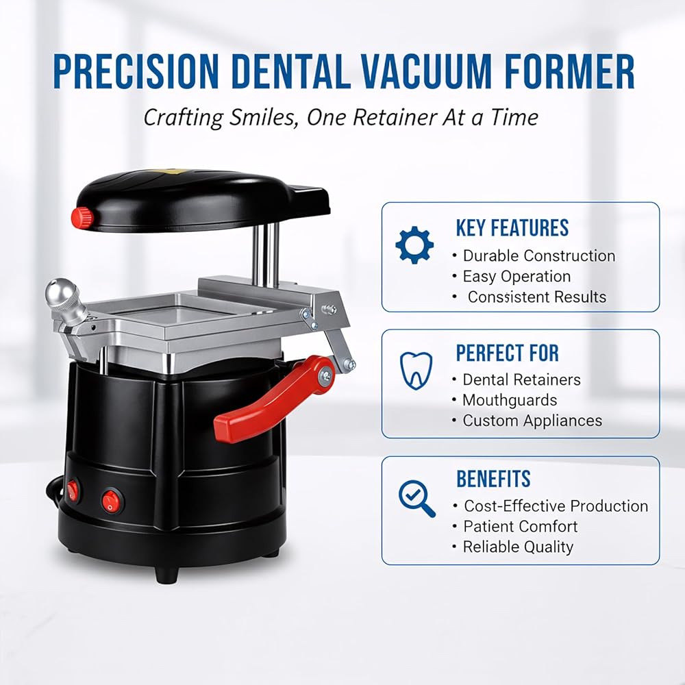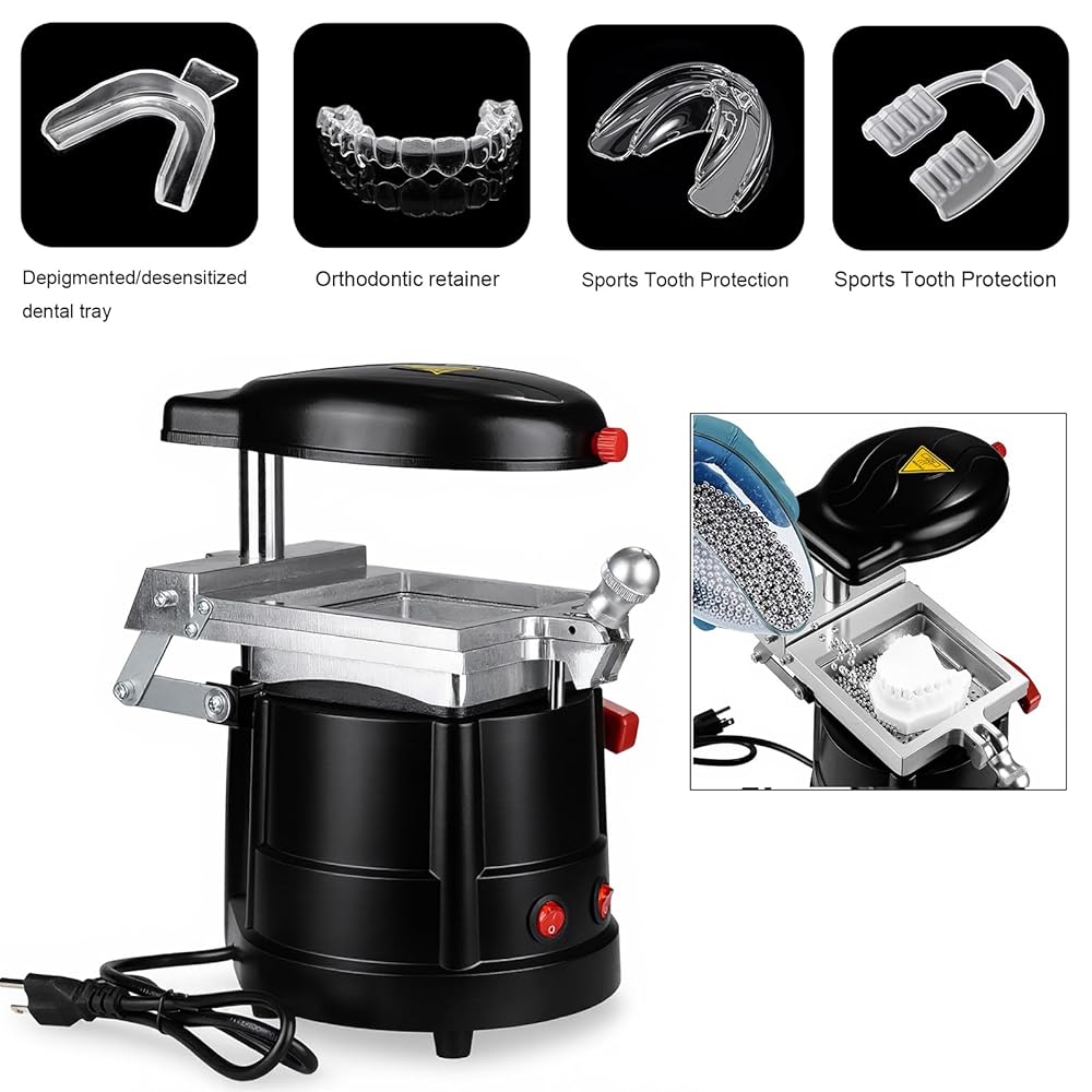 HIGH EFFICIENCY: The molding machine is equipped with high performance heating tubes and 600W heating power for fast heating. The powerful motor provides strong downward suction to cool the molded thermoplastic material quickly, which improves the productivity and reduces the waiting time