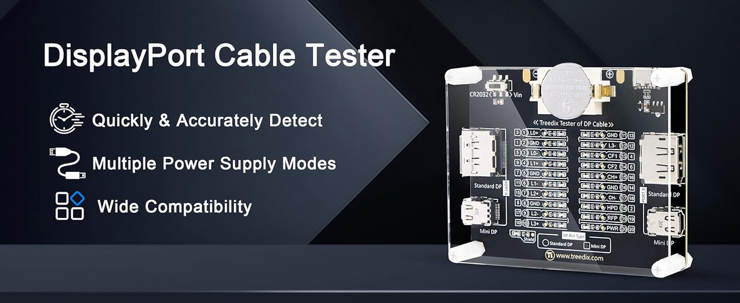 【Convenient and Practical】Its compact and portable design makes it easy to carry anywhere. Equipped with an acrylic protective case, it effectively safeguards the DisplayPort cable tester from damage