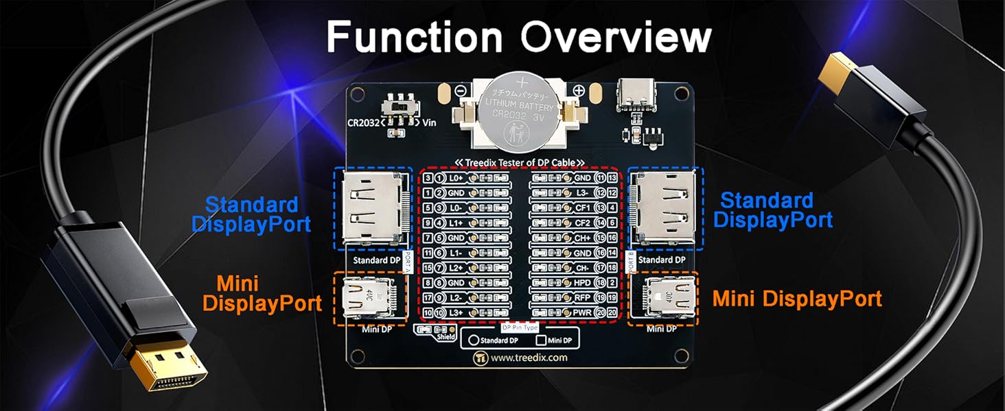 【Multi-function Tester】This DisplayPort tester can quickly and accurately detect the abnormality for DisplayPort cable, check whether there is a short circuit or open circuit inside the DP cable, and easily identify the faulty cables