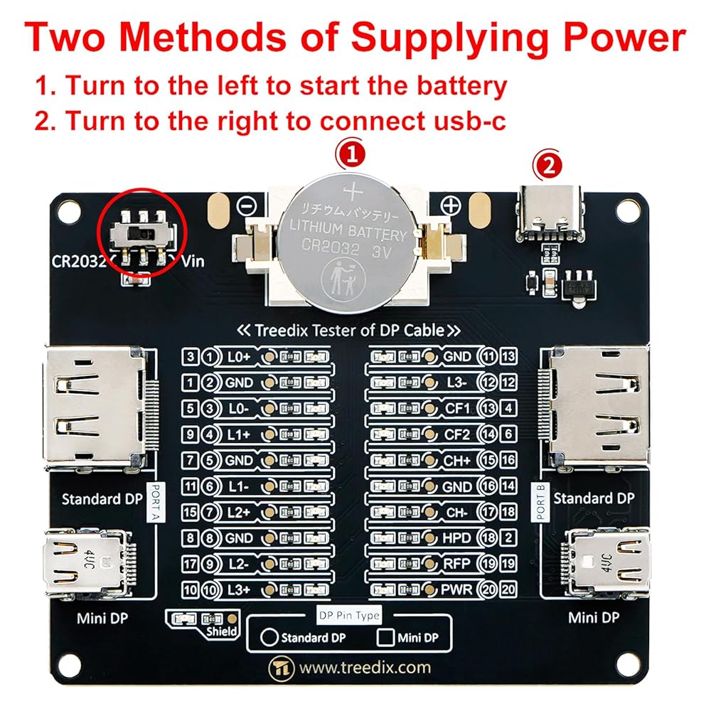 DisplayPort Cable Tester for Standard DisplayPort Cable and Mini DisplayPort Cable, 20 LED Light Status Indictor to Check Disorder Short Open for DP1.0, 1.1, 1.2,1.2a,1.3, 1.4, 2.0, 2.1