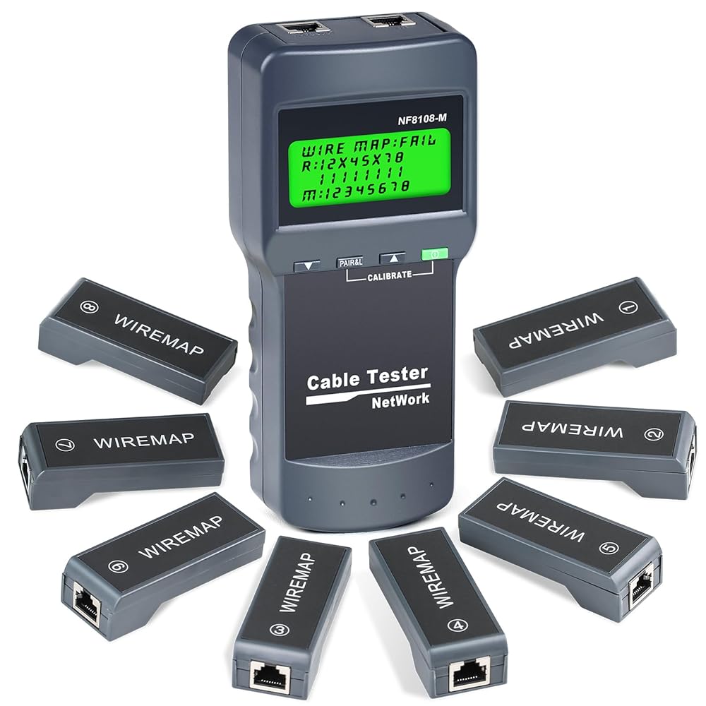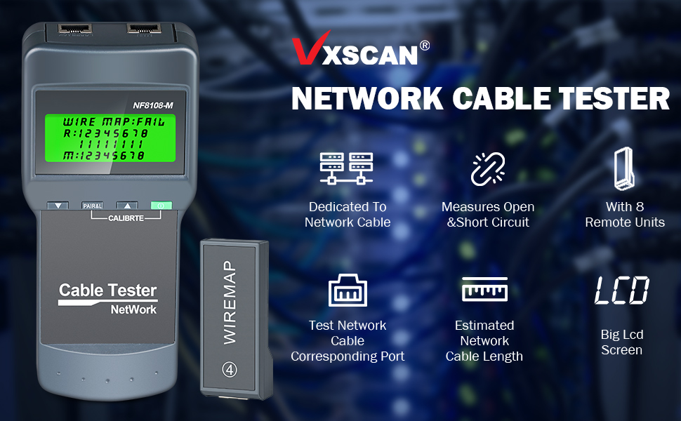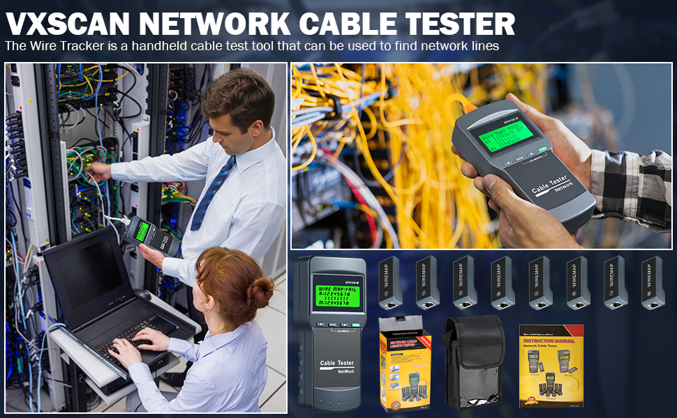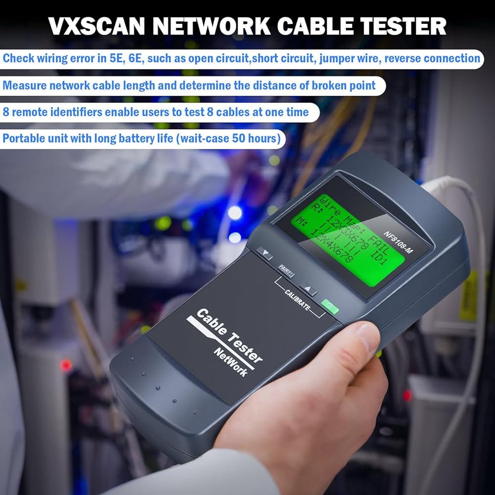 Network Cable Tester - VXSCAN Cable Wire Fault Finder for RJ45 Cat5, Cat6, 5e, 6e Measure Length, Locate The Breakage Point, Check Wiring Error with 8 Far-end Passive Test Jacks