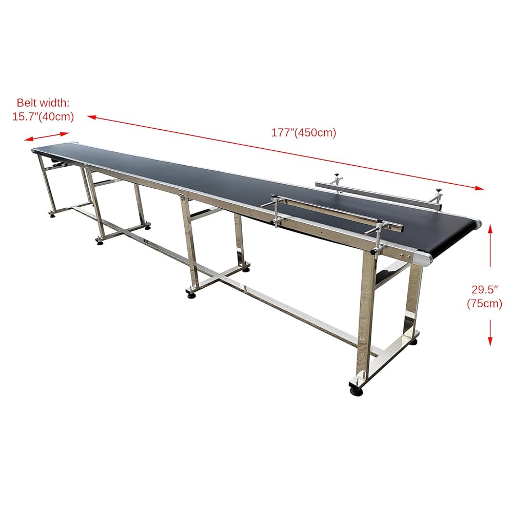 Large Size & 50KG Max Load: 177inch(4.5m) length × 15.7inch(0.4m) width × 29.5inch(0.75m) height, supports up to 50KG loads, ideal for conveying glass/plastic bottles, cartons, metals, and labels in factories.