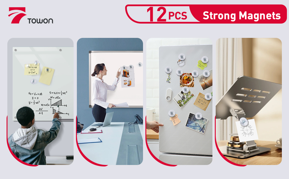 - Powerful Magnets: TOWON rare earth magnets are exceptionally strong and ideal for glass whiteboards and dry erase boards