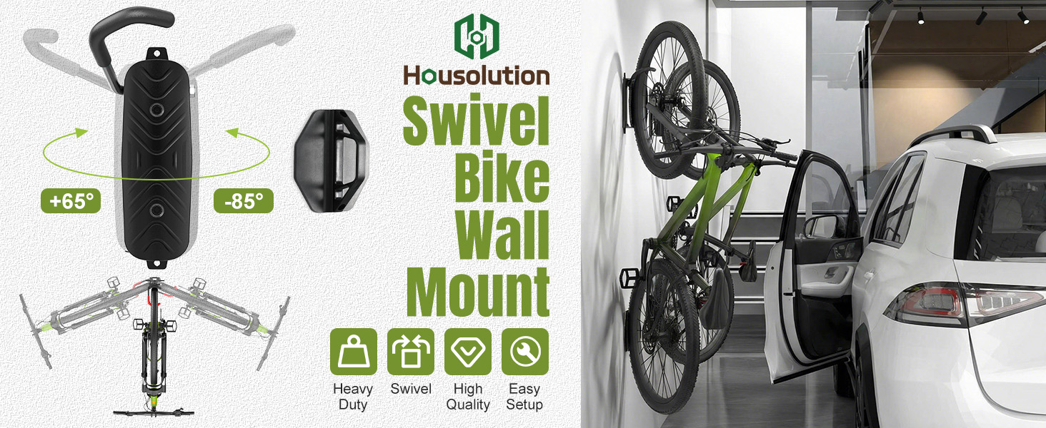 Save Space, 150° Swivel Design: Swivel design with bearing system, bike storage rack easy to store your bikes in the center, left, or right angle position, offering a convenient storage solution for parking around your car and in your apartment. The swivel system also allows you to store your bikes close to the wall. Simply hang the front wheel in place, place the rear wheel on the stabilizer, and rotate the bike wall rack to the desired angle.