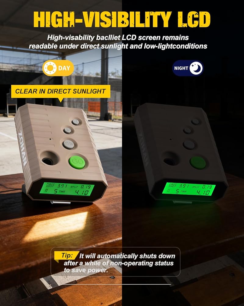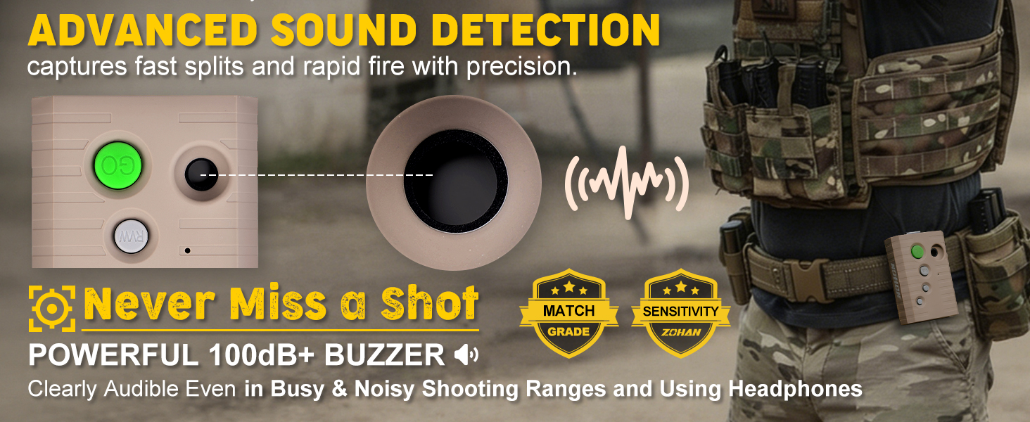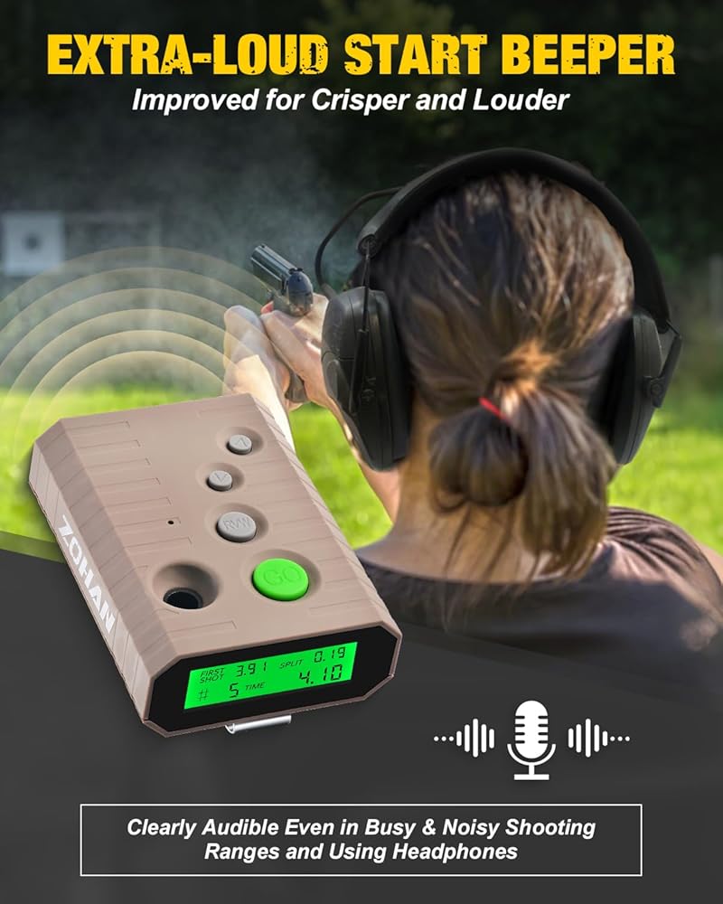 MATCH-GRADE SENSITIVITY – NEVER MISS A SHOT -Advanced sound detection instantly captures fast splits, rapid fire, and training drills with precision. Designed for serious shooters, instructors, and competitors who demand reliable shot timing